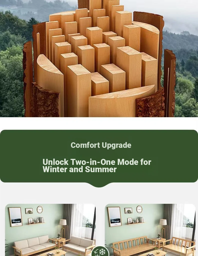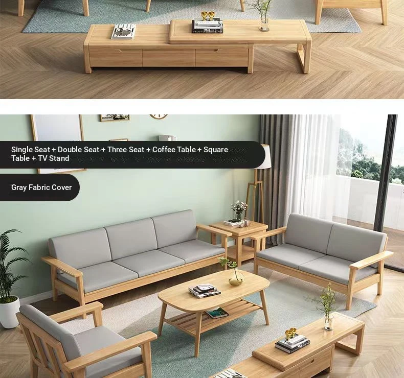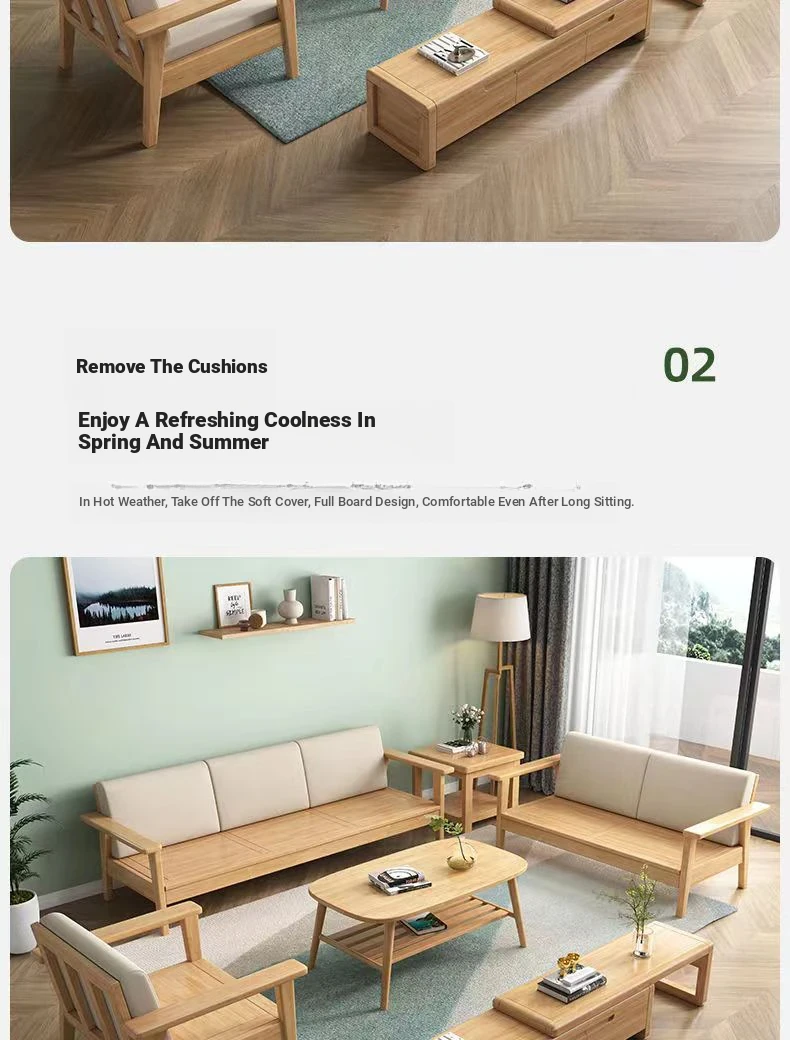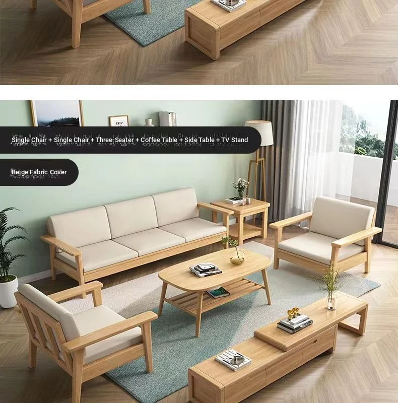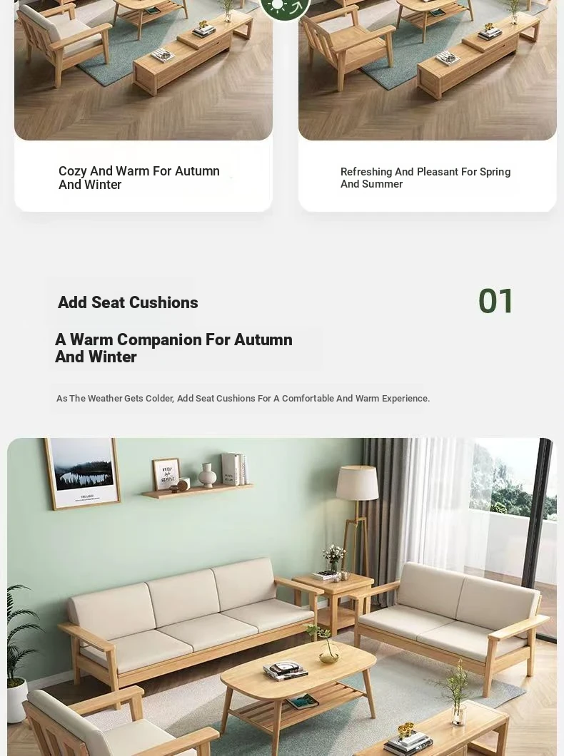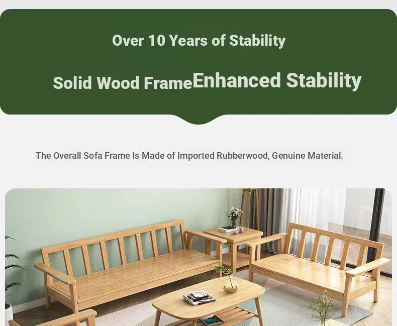 Nordic Style Solid Wood Sofa Set for Small Spaces - Versatile Winter/Summer Use, Budget-Friendly Natural Wood Straight Sofa for Cozy Living Rooms