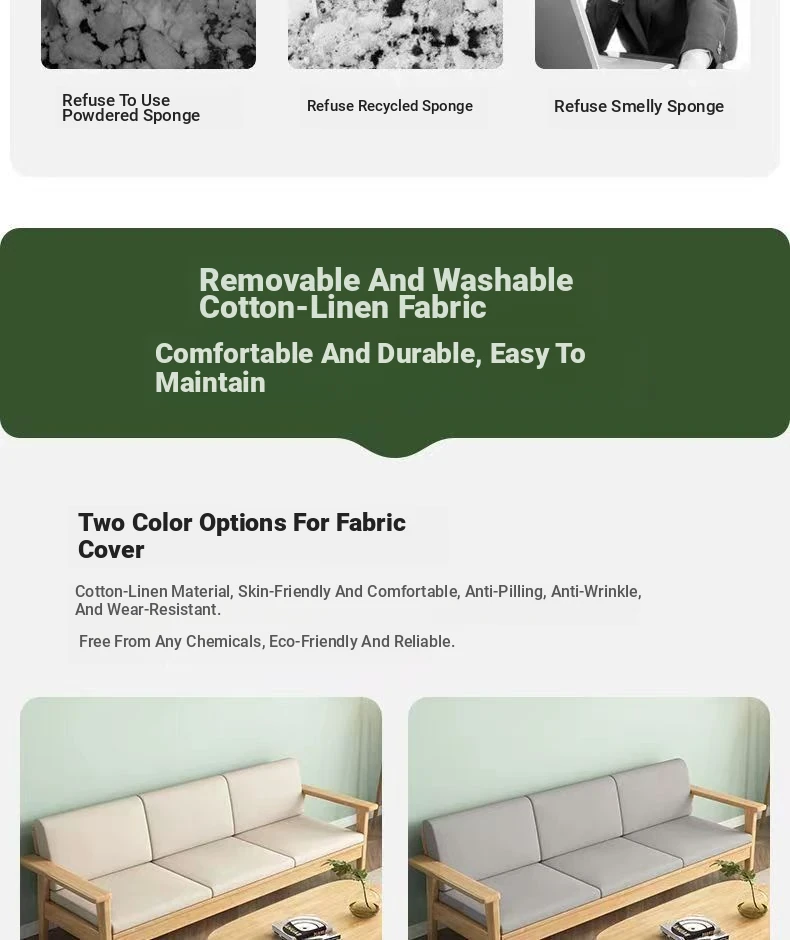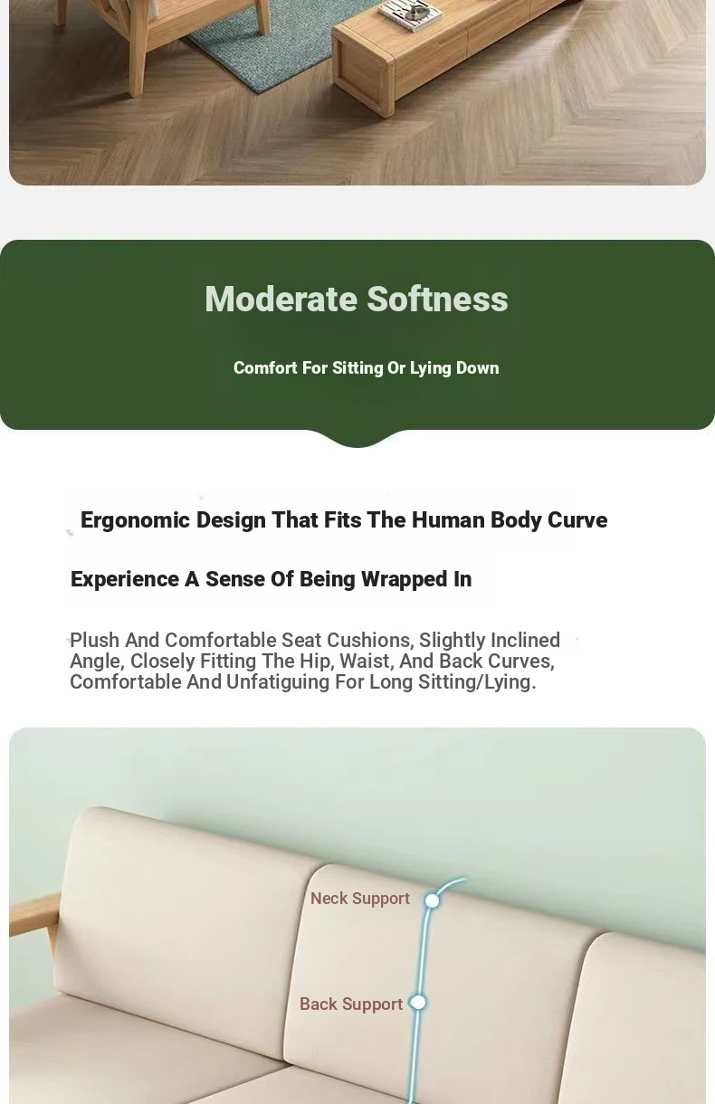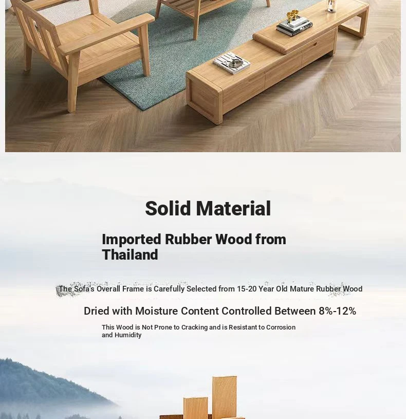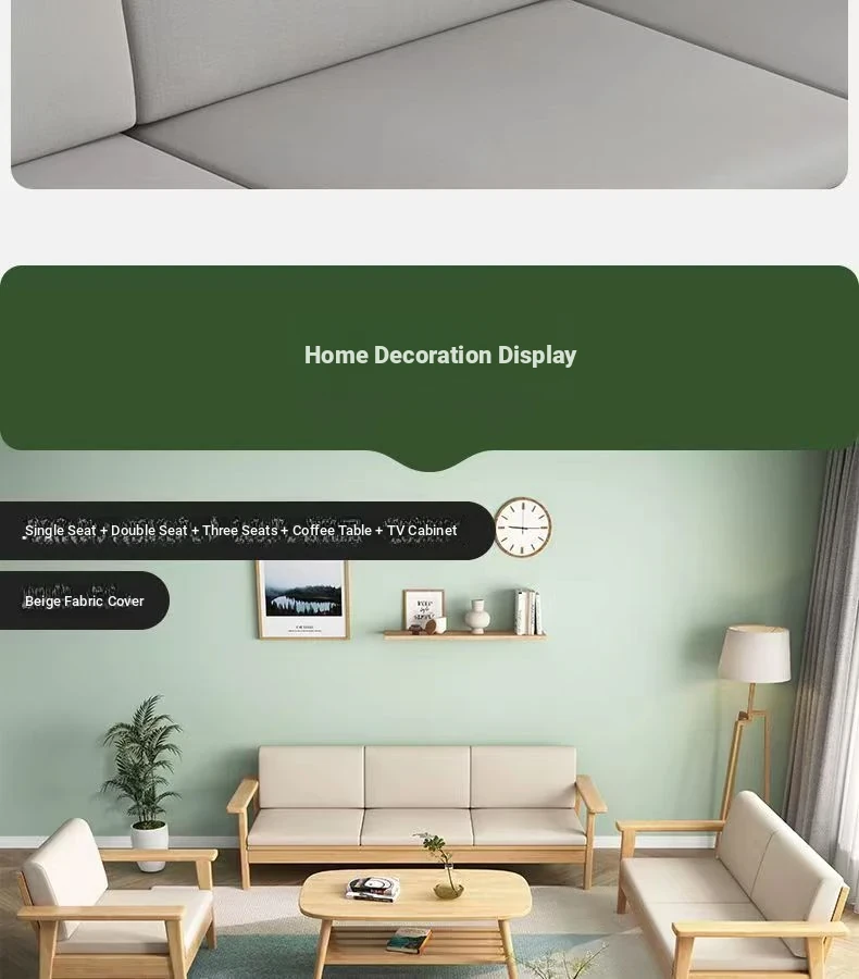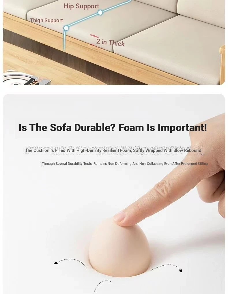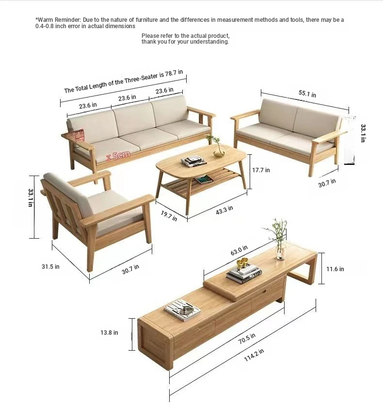 Nordic Style Solid Wood Sofa Set for Small Spaces - Versatile Winter/Summer Use, Budget-Friendly Natural Wood Straight Sofa for Cozy Living Rooms