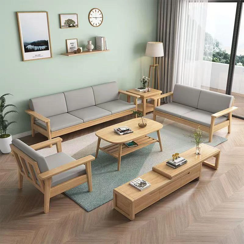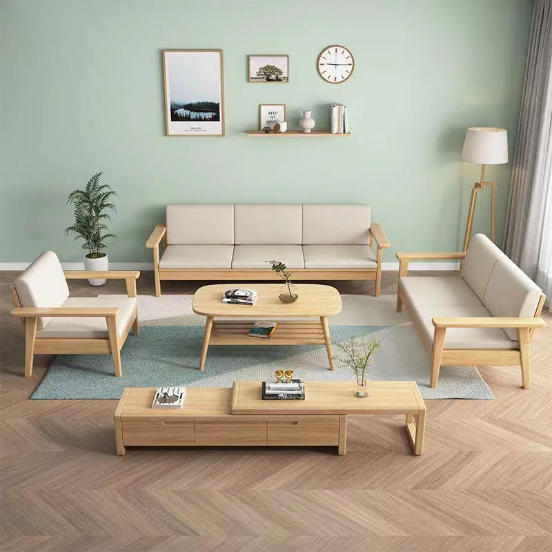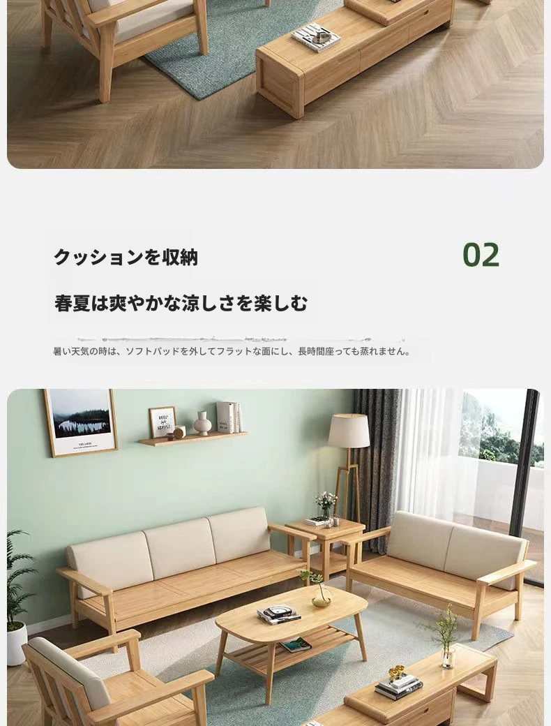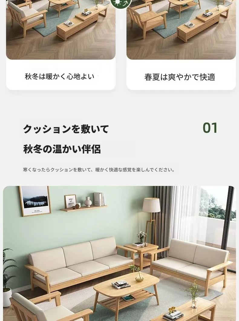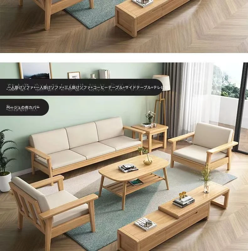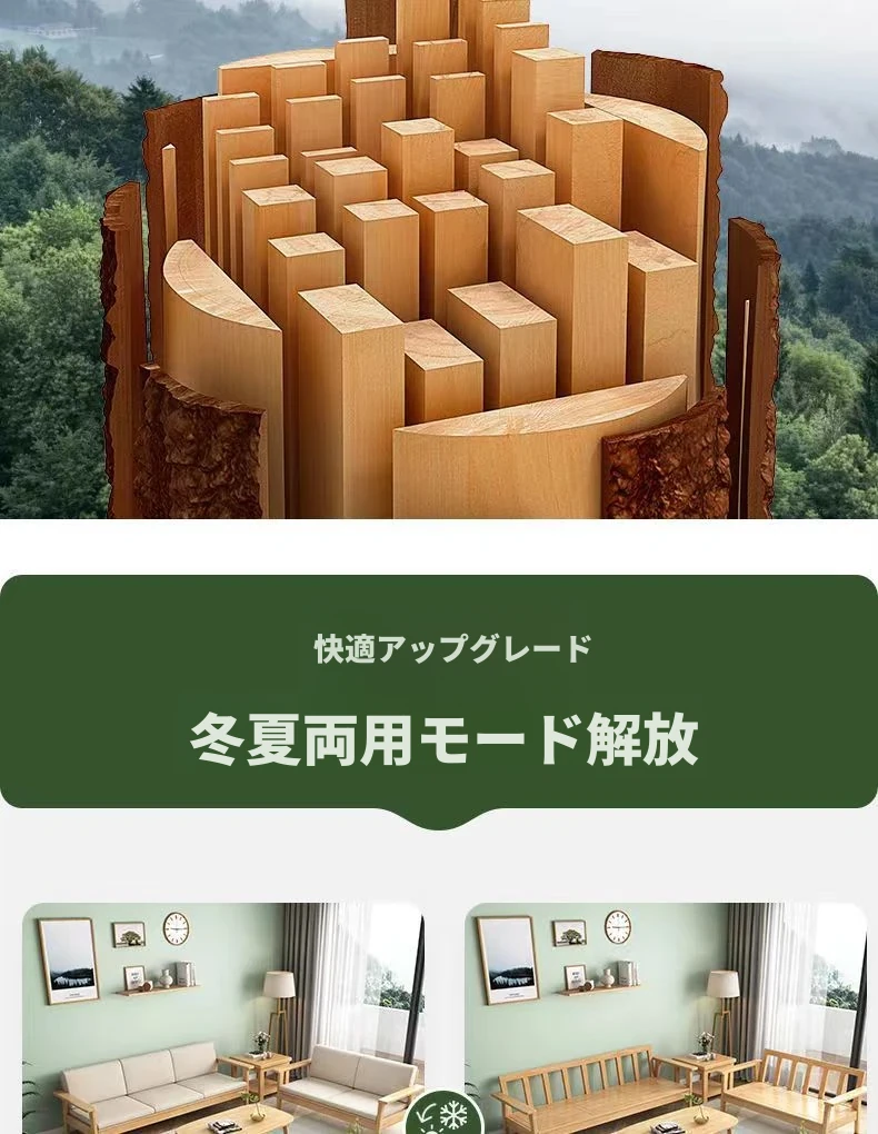 北欧スタイルの実木ソファセット - 冬も夏も快適!小さなリビングにぴったりな経済的な原木デザインの直排ソファで、シンプルでおしゃれな空間を実現。