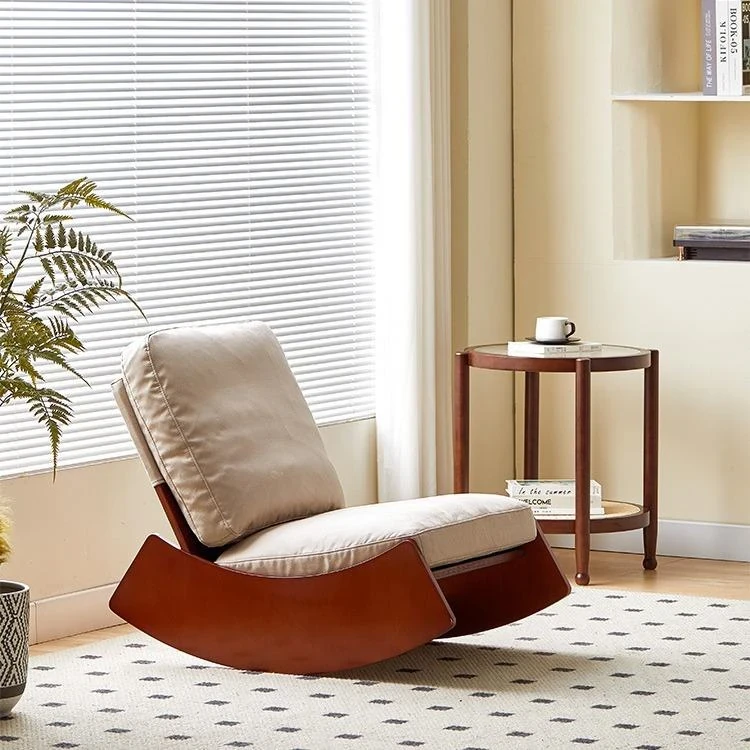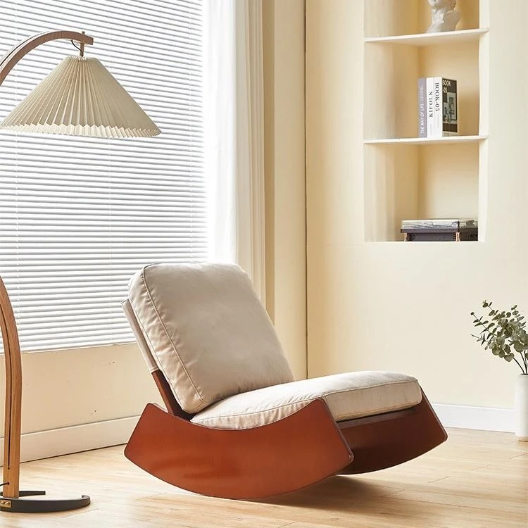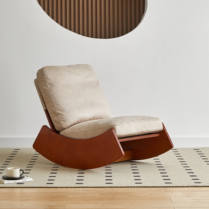 Nordic Vintage Designer Solid Wood Single Sofa Chair - Retro Lounge Chair for Living Room, Balcony, and Cozy Spaces - Embrace Wabi-Sabi Aesthetics with this Trendy Rocking Chair