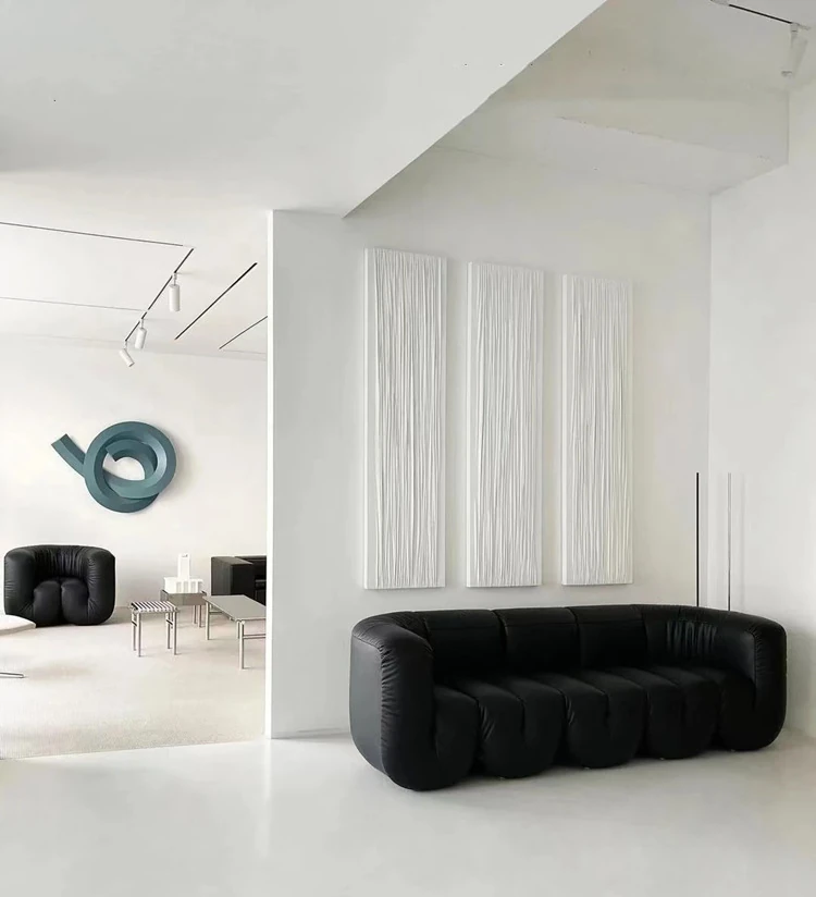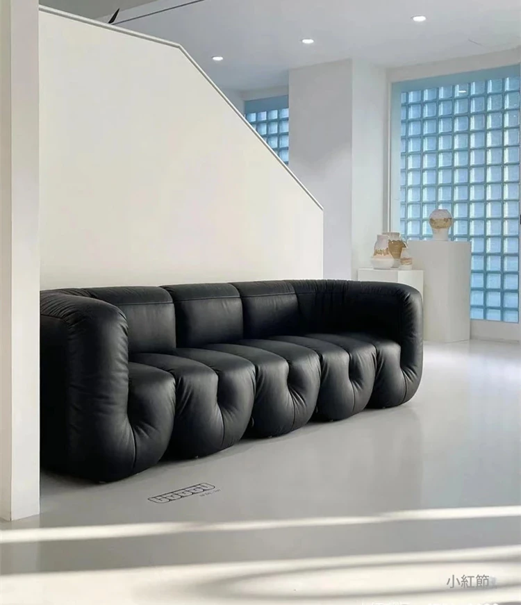 北欧風ミッドセンチュリーDS707アームレスト付きU字型モジュラーソファ|イタリアンデザインのヴィンテージ風ブラックレザーソファ|宿泊施設にぴったりのスタイリッシュなインテリア!