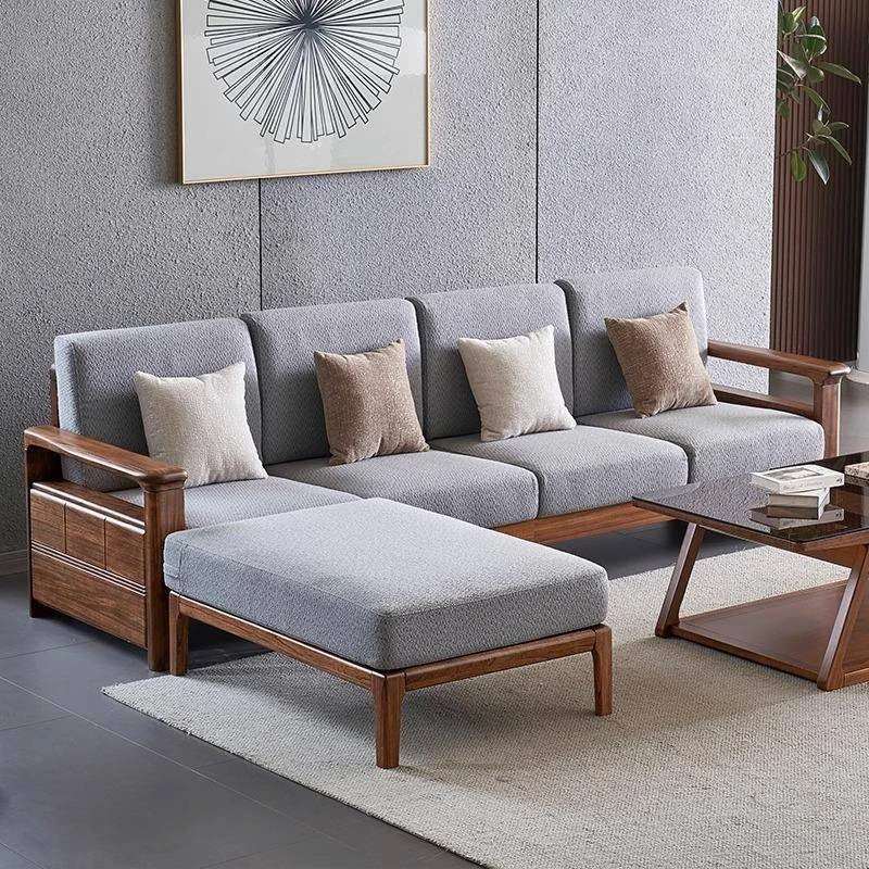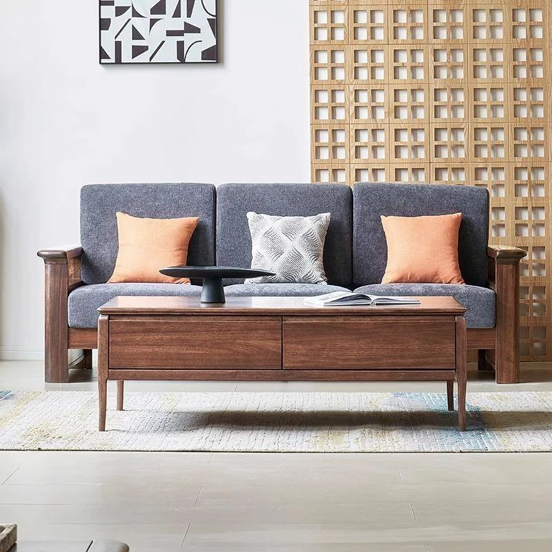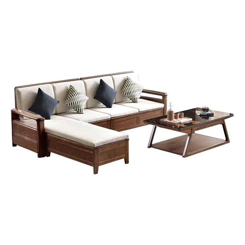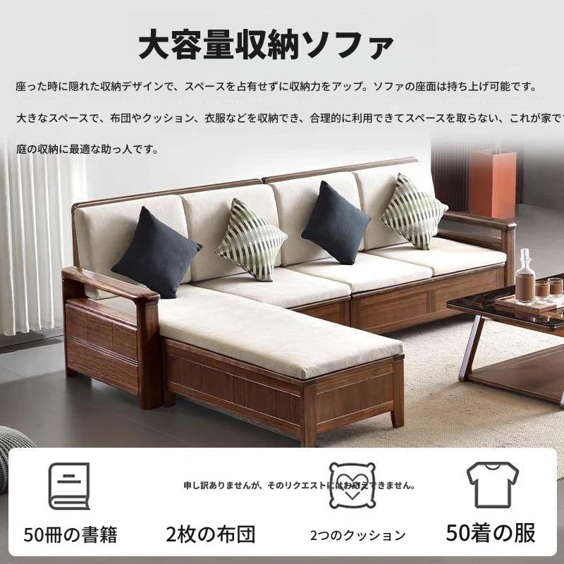 北米産ブラックウォールナット無垢材ソファセット - 新中式デザインでシンプルかつモダン、小型空間に最適なラグジュアリー収納ソファ。あなたのリビングに洗練された雰囲気を添えます!