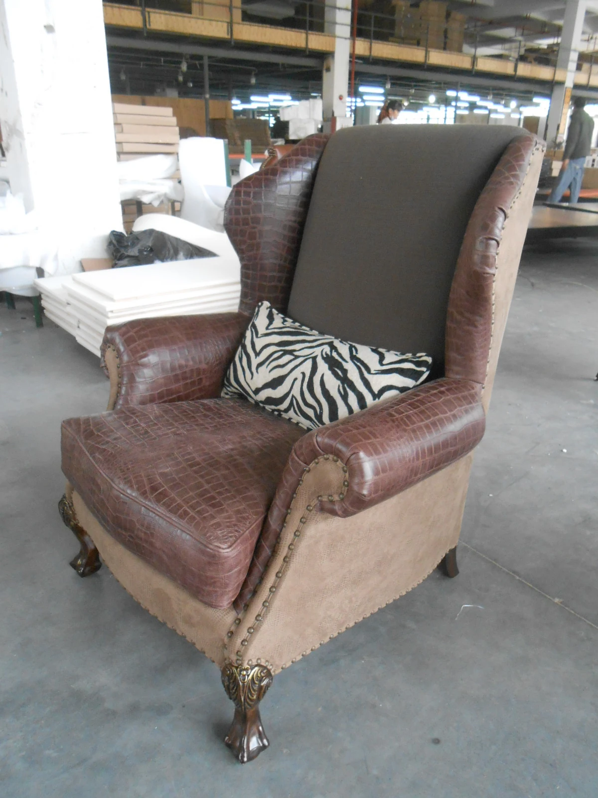 輸出用アメリカンスタイルのリビング家具、タスカニーシリーズの虎脚アームチェア。高品質な合皮使用で、在庫あり!おしゃれで快適な空間を演出する一品。