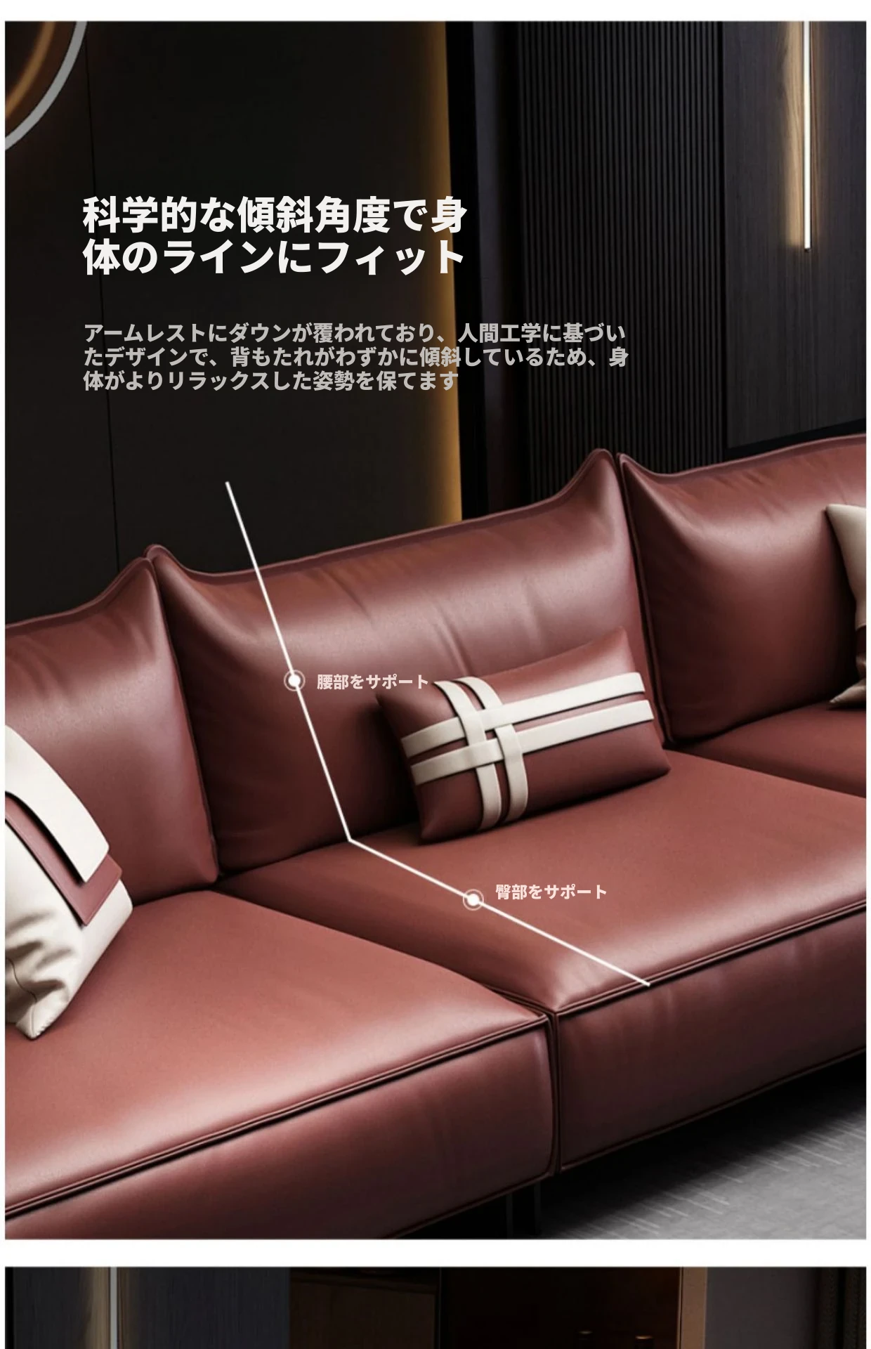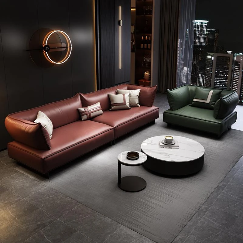 高級感溢れるイタリアンスタイルのレザーソファB818 - 3〜4人用、コンパクトなスペースにも最適なシンプルで洗練されたデザイン!上質な第一層牛革使用で、贅沢な座り心地をお楽しみください。