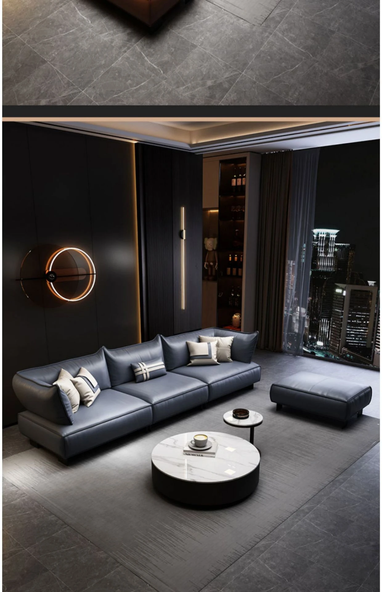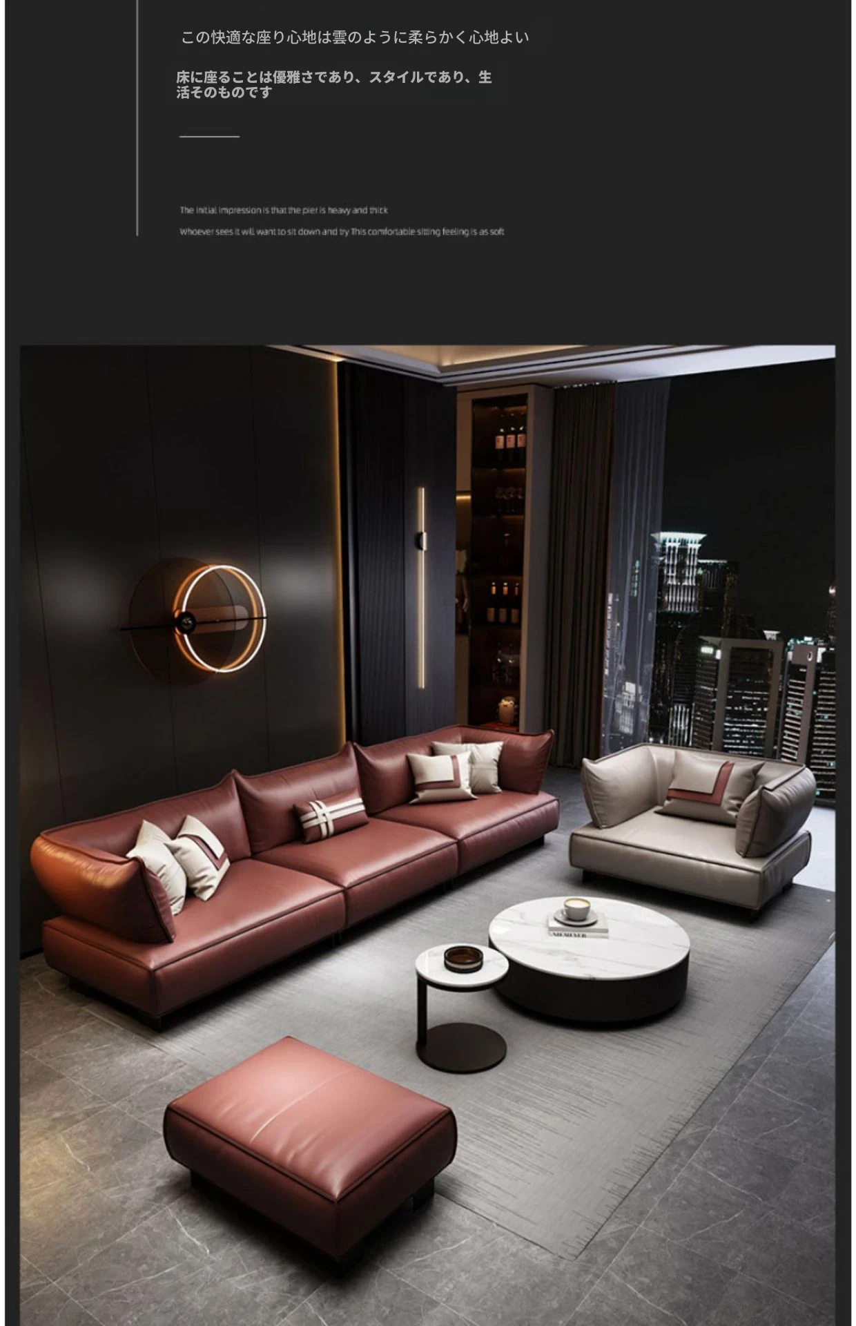 フットスツール+大3人掛け本革