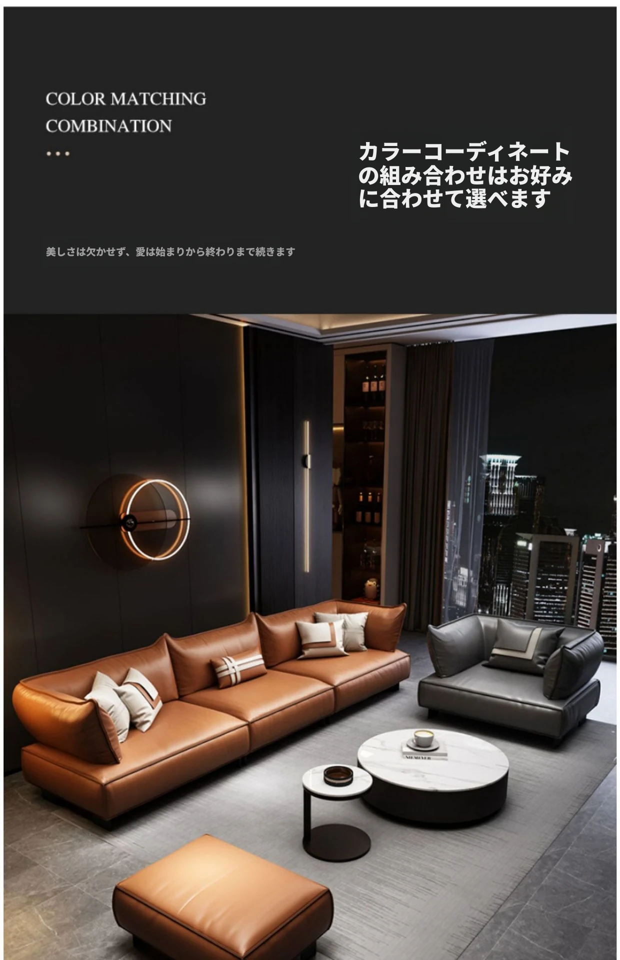 フットスツール+4人掛け+1人掛け(本革)