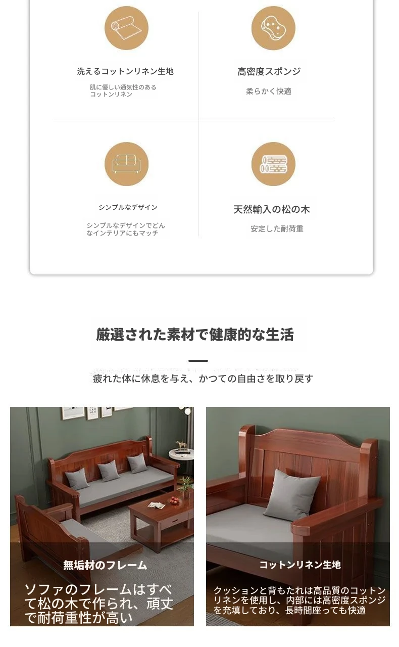 天然木材を使用した多機能チェア - 冬はリラックス、夏は涼しい!コンパクトなデザインでバルコニーや寝室、リビングにぴったりな3人掛け・4人掛け用。快適なひとときを提供します!