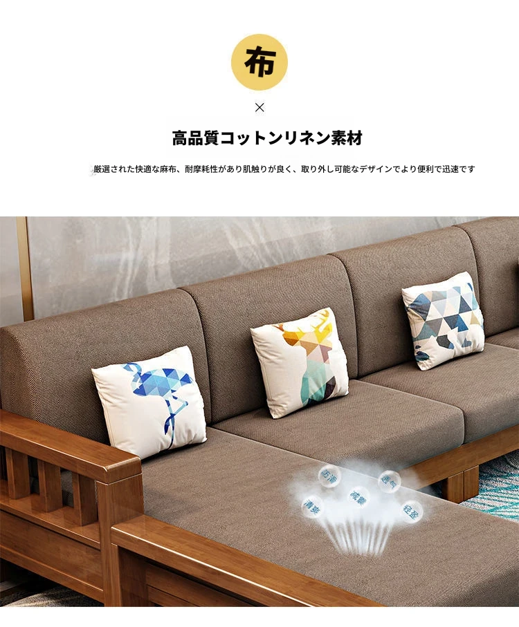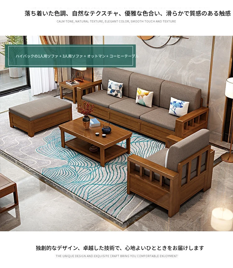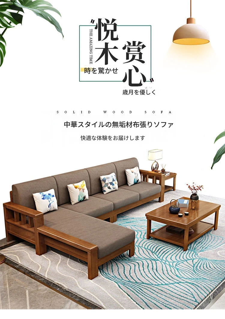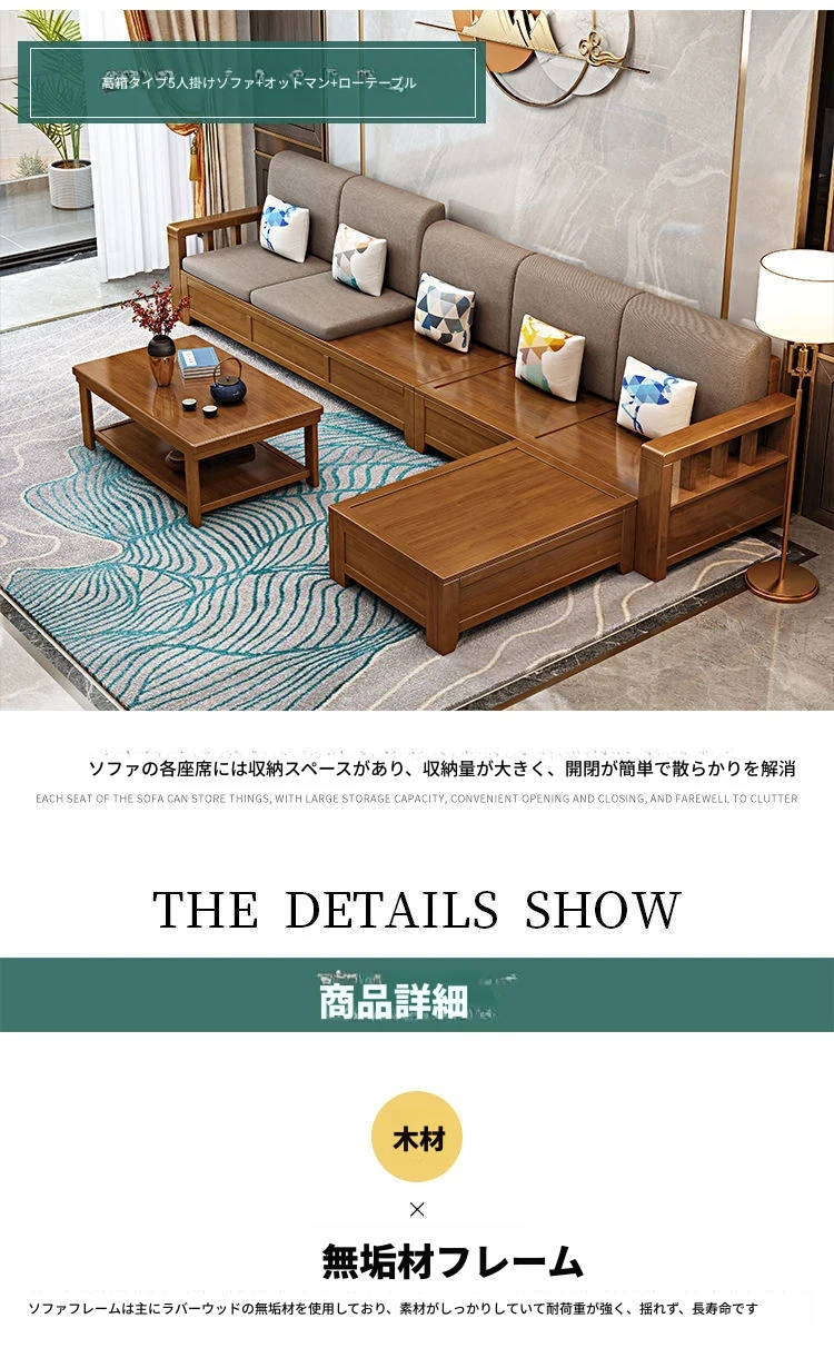 全実木製ソファー・リビング家具・貴妃スタイル・中小型向け・シンプルでスタイリッシュ・収納付き高箱・天然木のコンビネーションでお部屋を美しく演出!