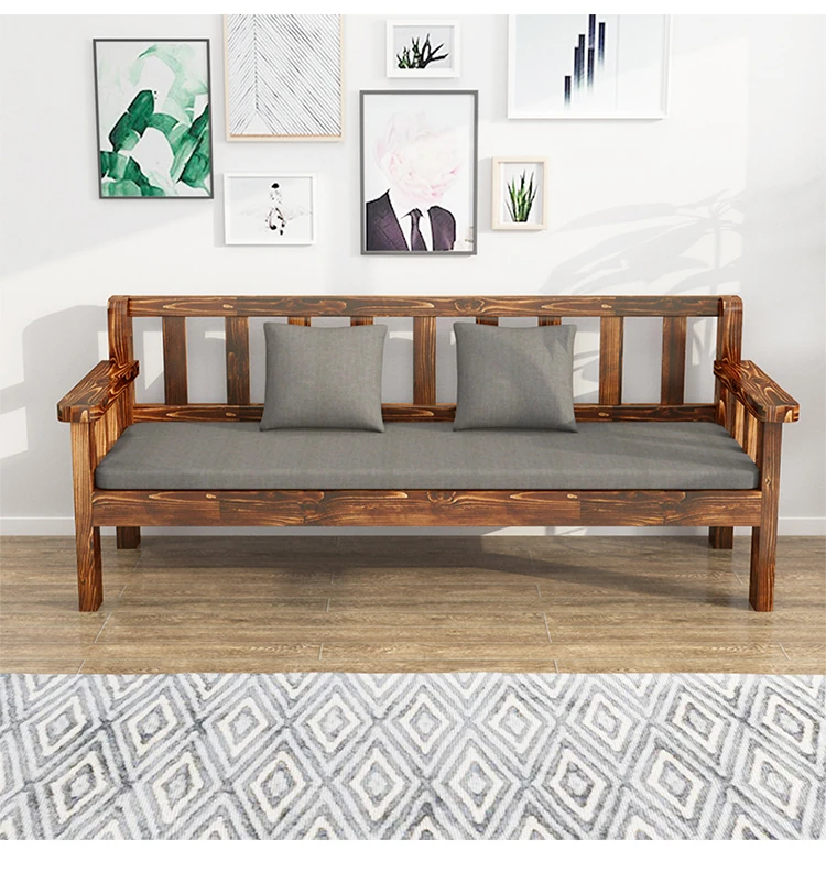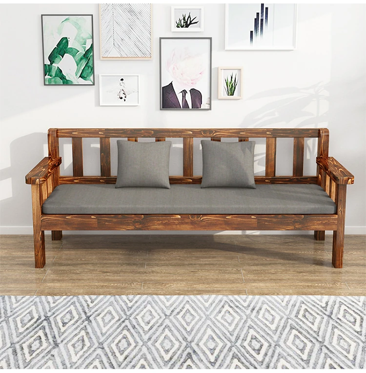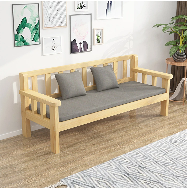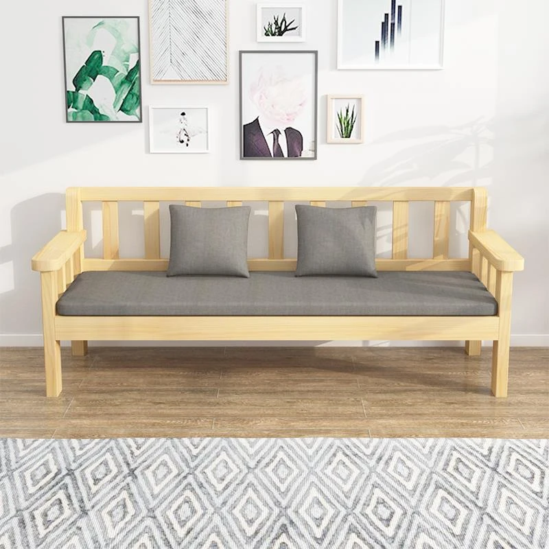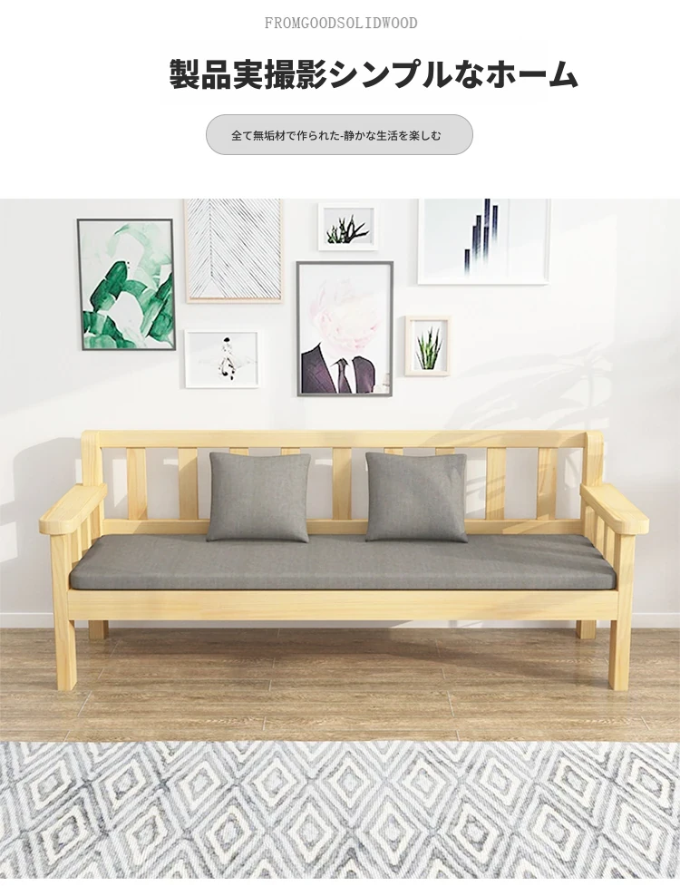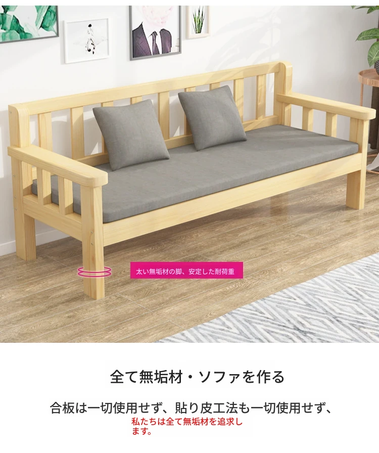 新中式全実木製ソファセット - 小型リビングに最適な経済的な3人掛け椅子型、耐久性抜群で長持ちする木製ソファ。温かみのあるデザインで、あなたのリビングをおしゃれに演出します!