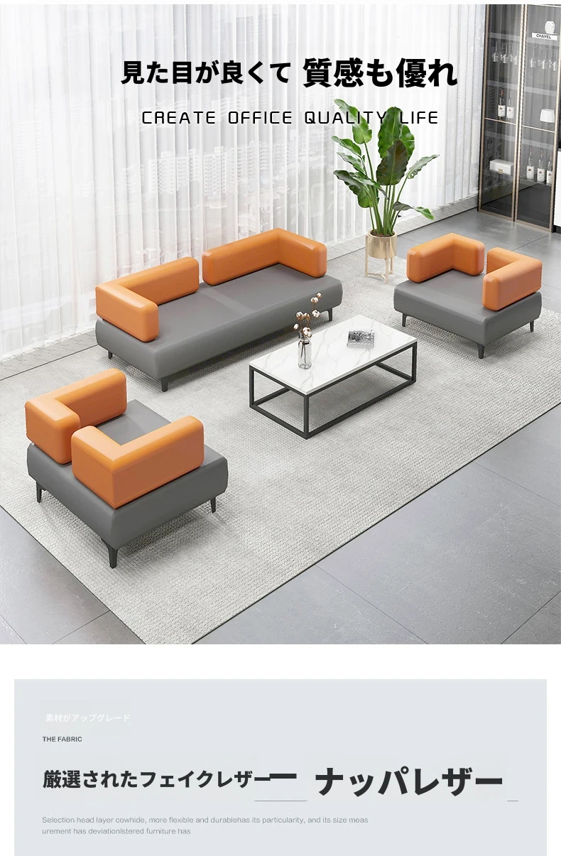 ビジネスに最適!オフィスソファとコーヒーテーブルのセット - 会議、接客、ホテルのフロント、ロビーの待機エリアにぴったりなリラックス空間を提供します。快適な休息で仕事の効率をアップ!