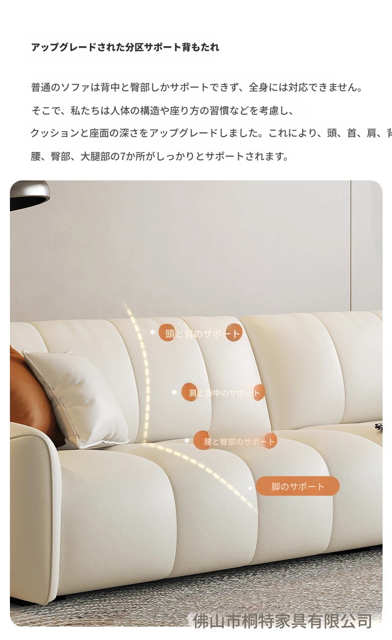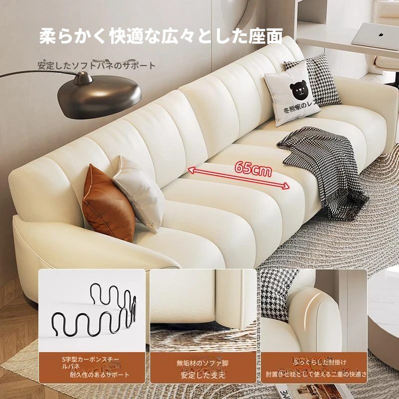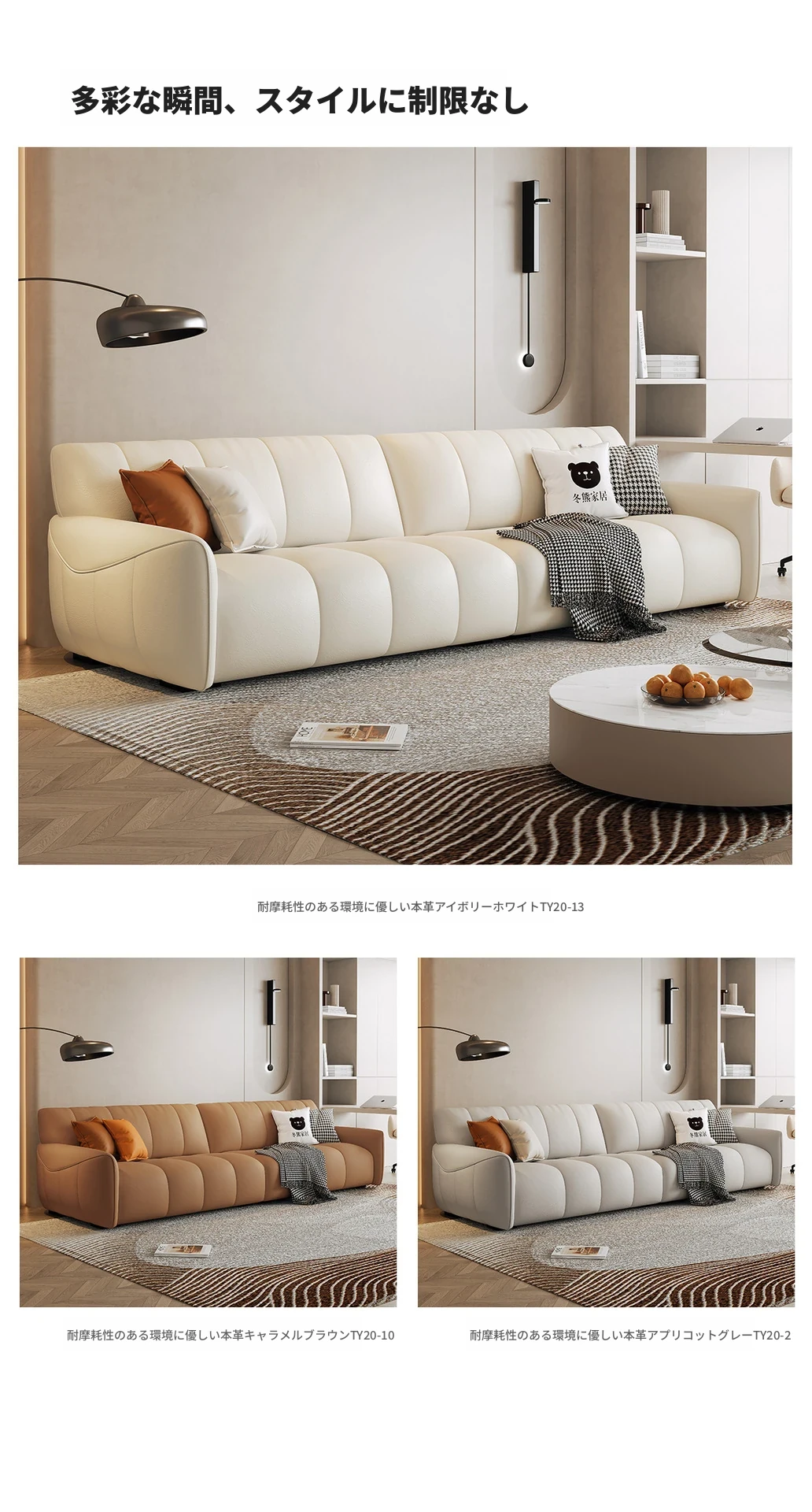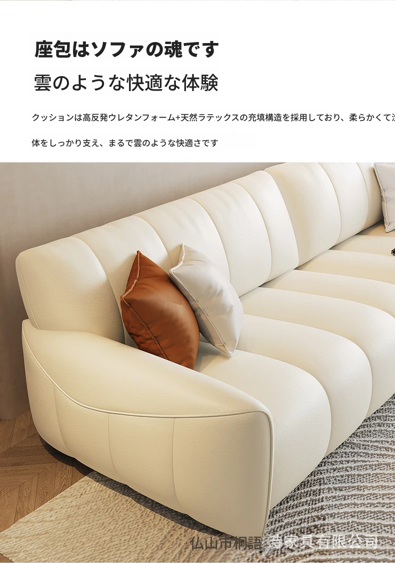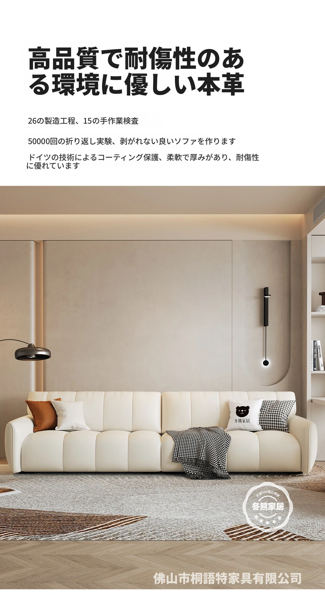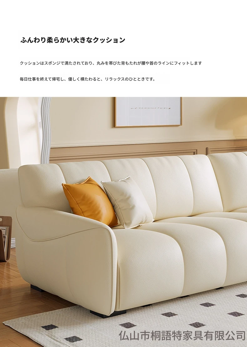 桐語特製 高級ピアノ鍵デザインソファ - シンプルでモダンなリビングルーム向け、ミニマルな小型住宅にぴったりなクリーム風味の真皮ソファ!贅沢な座り心地で、あなたの空間を格上げします。