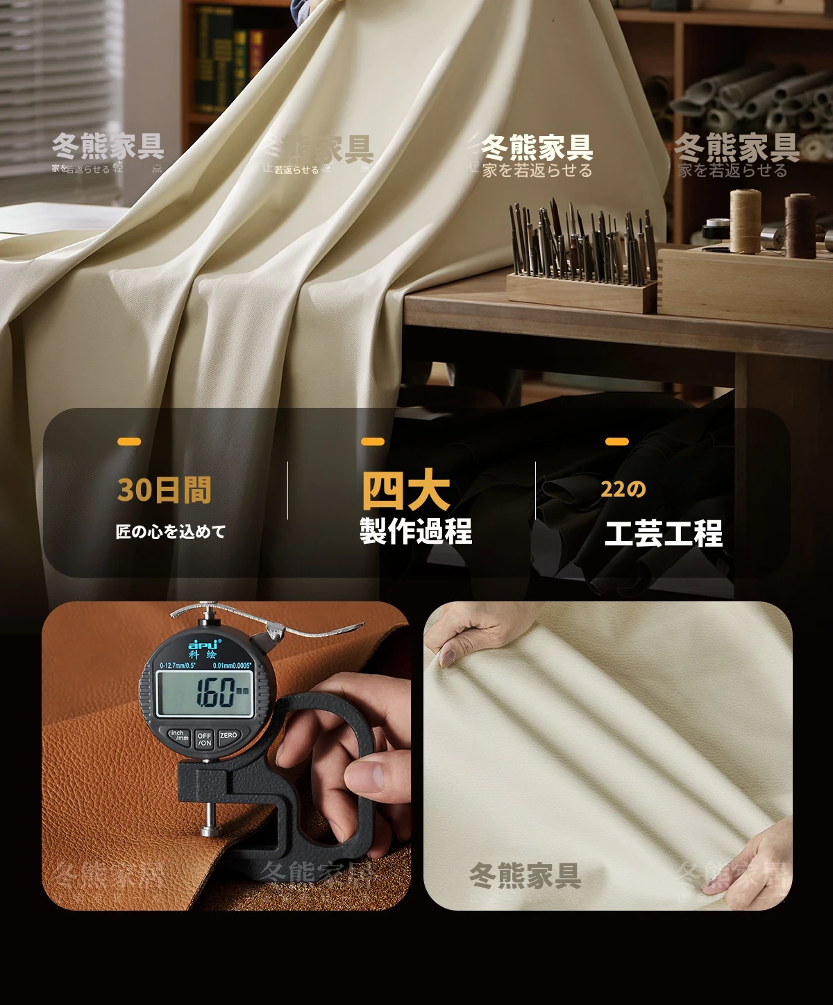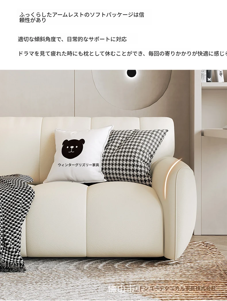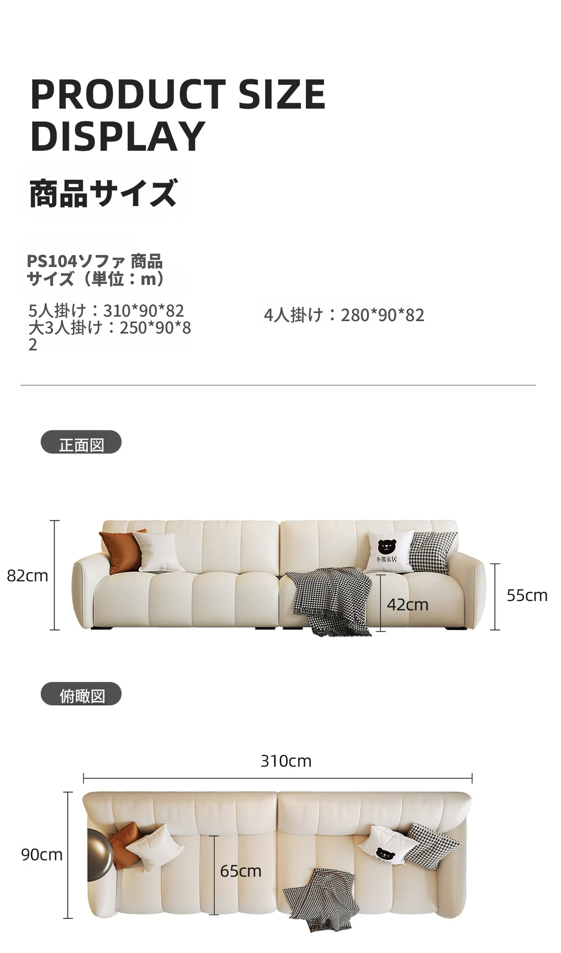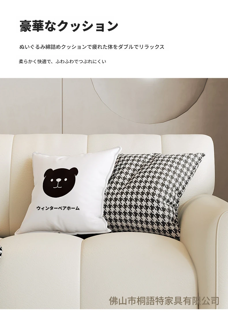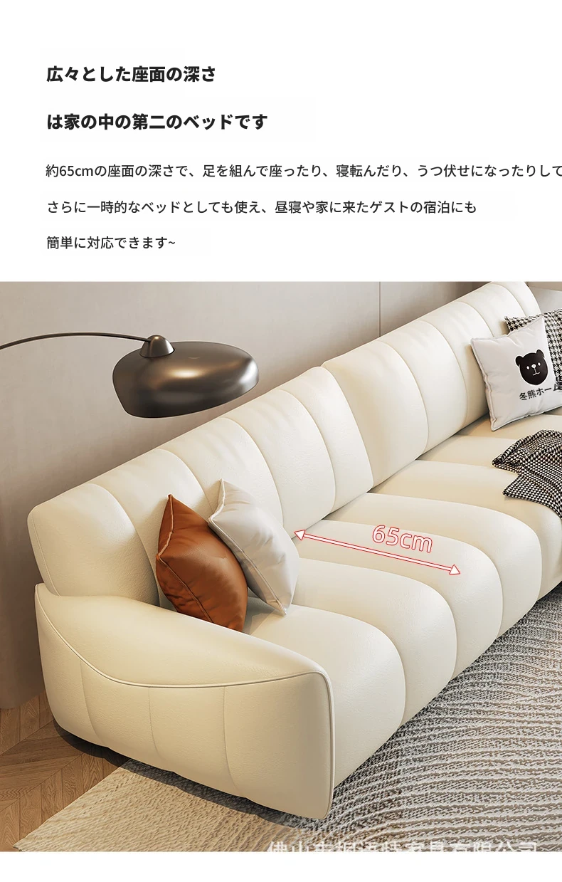 桐語特製 高級ピアノ鍵デザインソファ - シンプルでモダンなリビングルーム向け、ミニマルな小型住宅にぴったりなクリーム風味の真皮ソファ!贅沢な座り心地で、あなたの空間を格上げします。