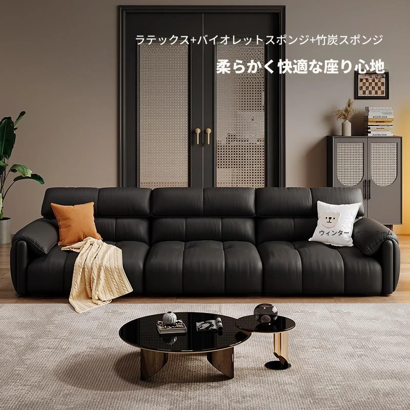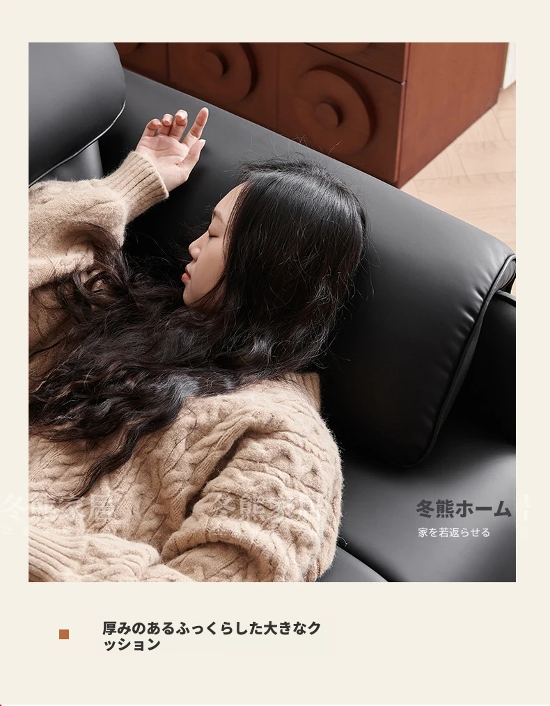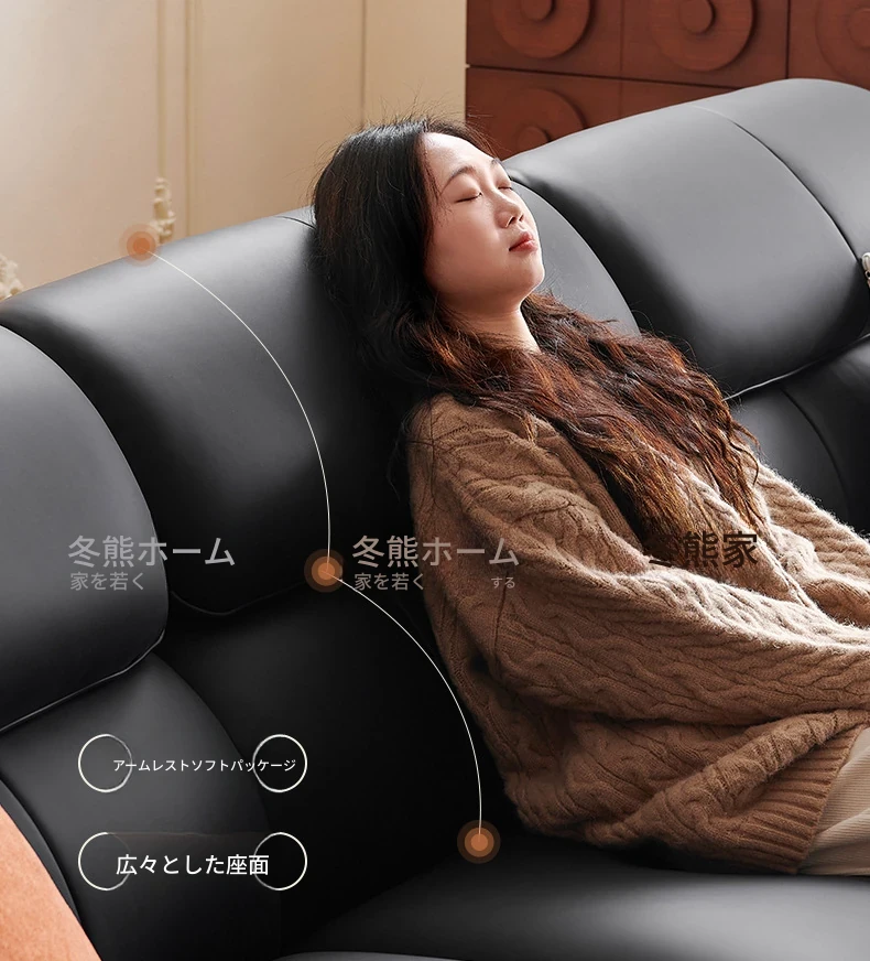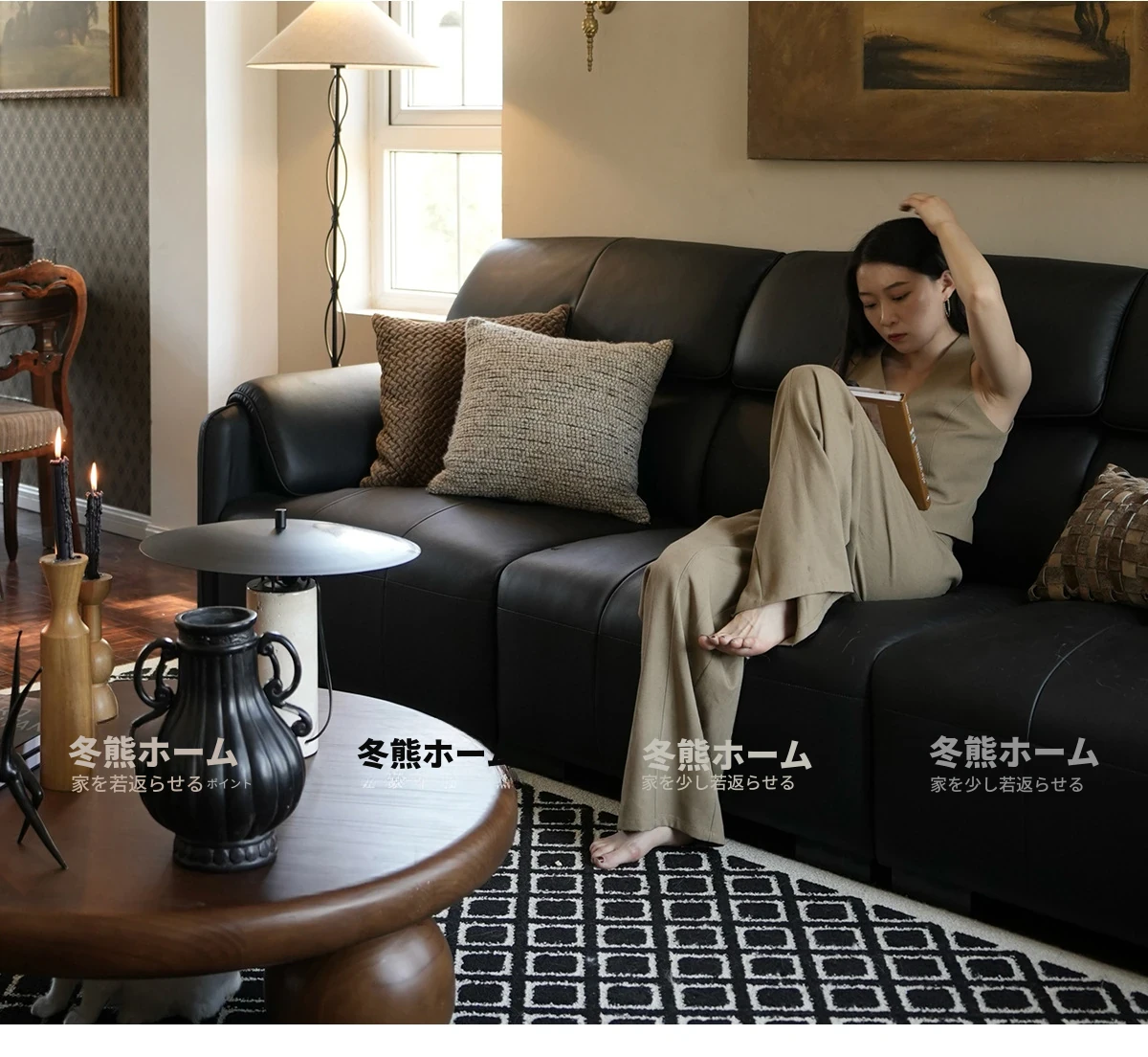 桐語特製 大きな耳の象のデザイン アメリカンヴィンテージ風 リビングルーム用 コンパクトサイズ フレンチレトロ ブラックレザーソファ - おしゃれで快適な空間を演出!