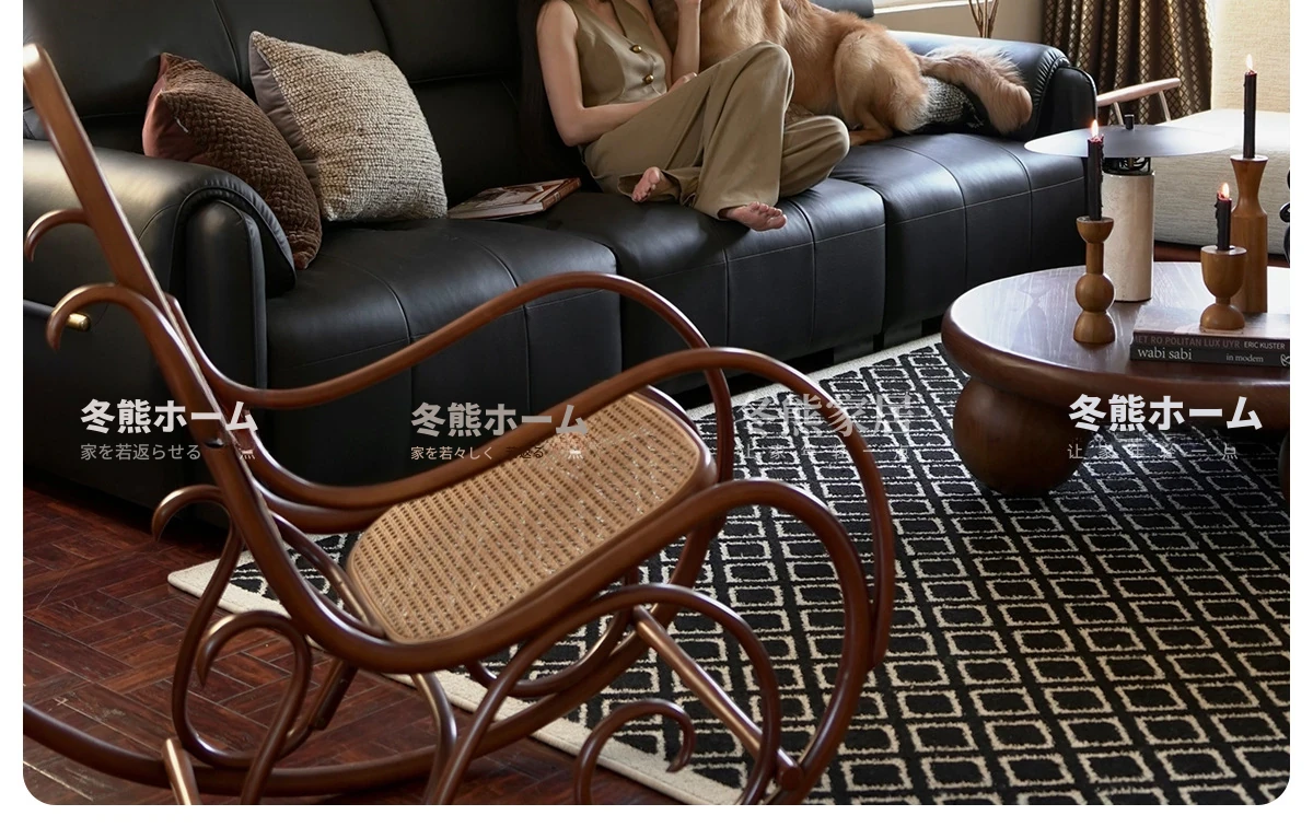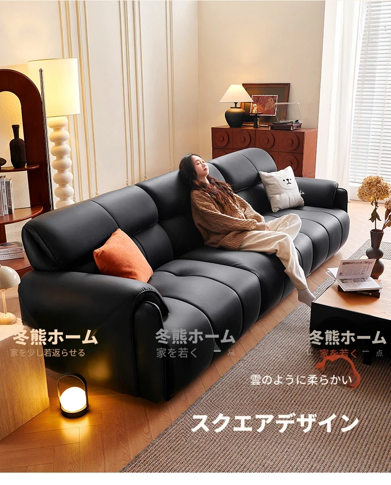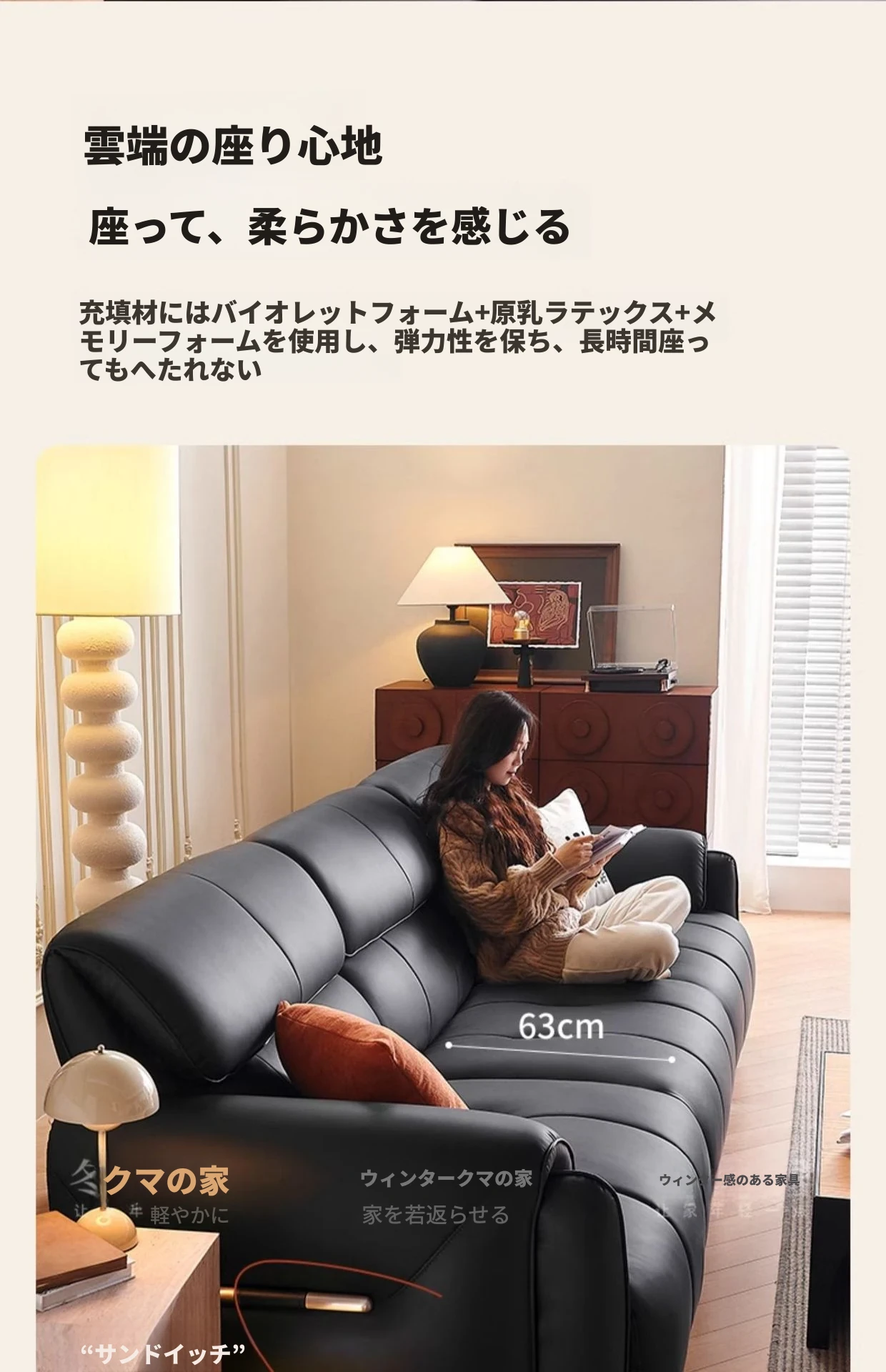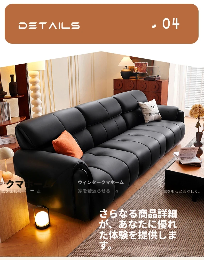 桐語特製 大きな耳の象のデザイン アメリカンヴィンテージ風 リビングルーム用 コンパクトサイズ フレンチレトロ ブラックレザーソファ - おしゃれで快適な空間を演出!