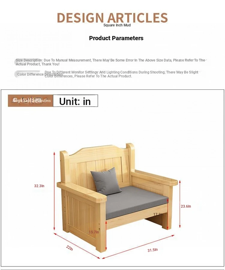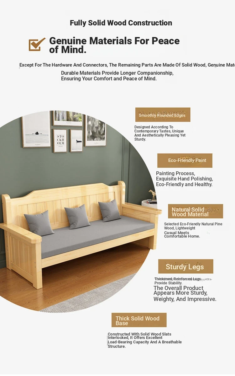Versatile Solid Wood Sofa Bench - Perfect for Summer and Winter Use in Small Apartments, Balconies, Bedrooms, and Living Rooms; Comfortable Seating for Up to 3 People - Ideal for Relaxation and Leisure