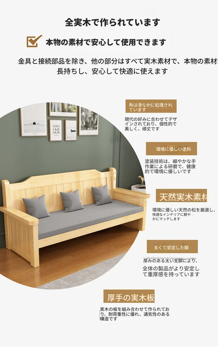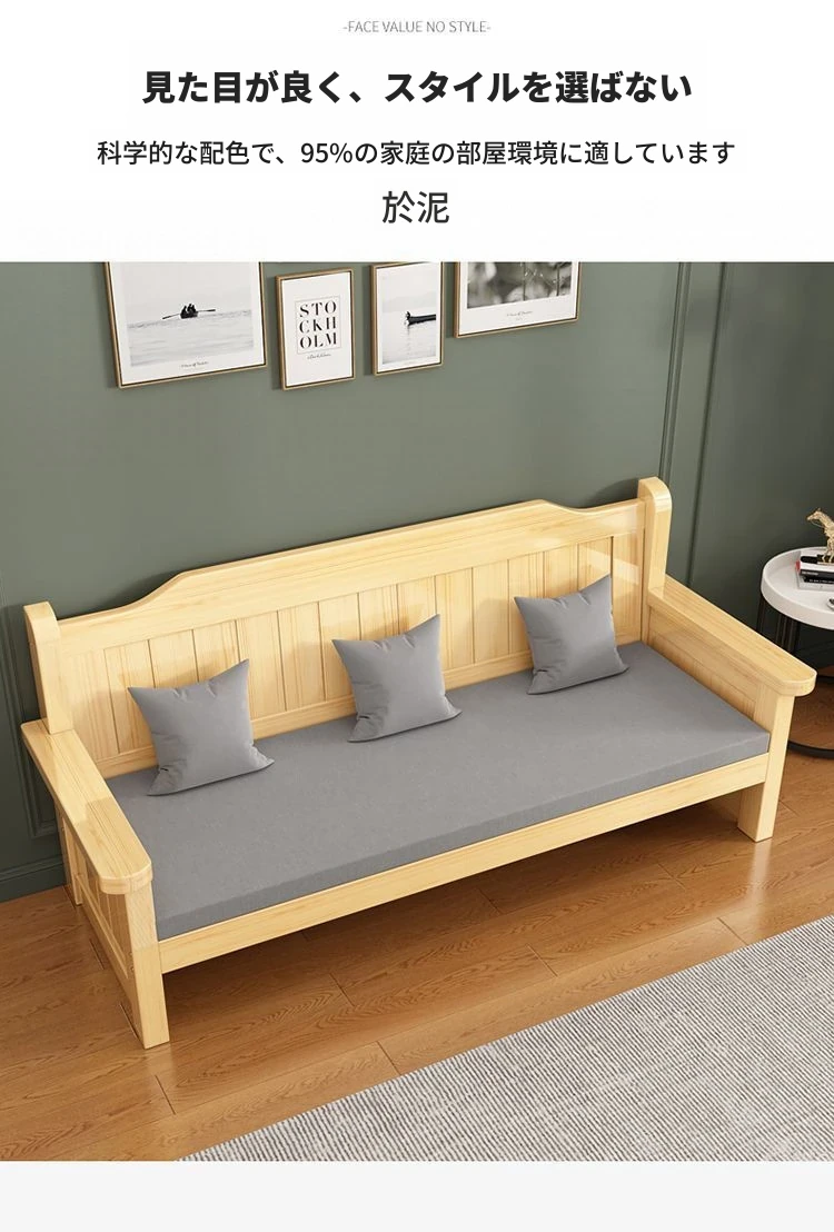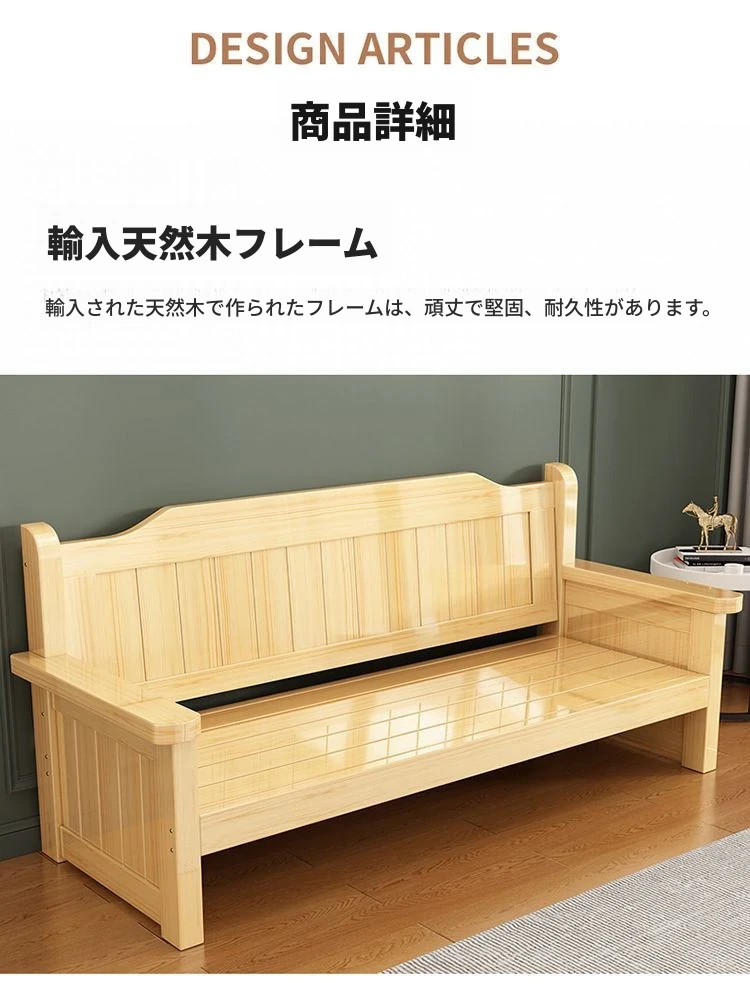 多機能実木ロングベンチソファ - 夏は涼しく、冬は快適!狭いスペースでも活躍するデザイン。バルコニーや寝室、リビングにぴったり。4人まで座れるゆったりサイズで、くつろぎのひとときをお届けします!
