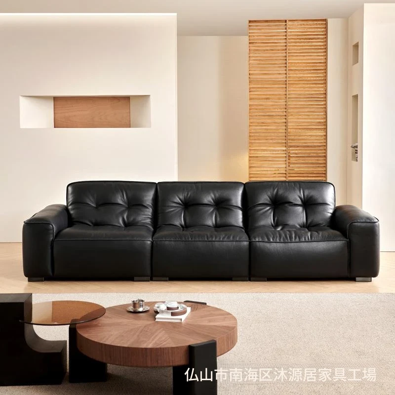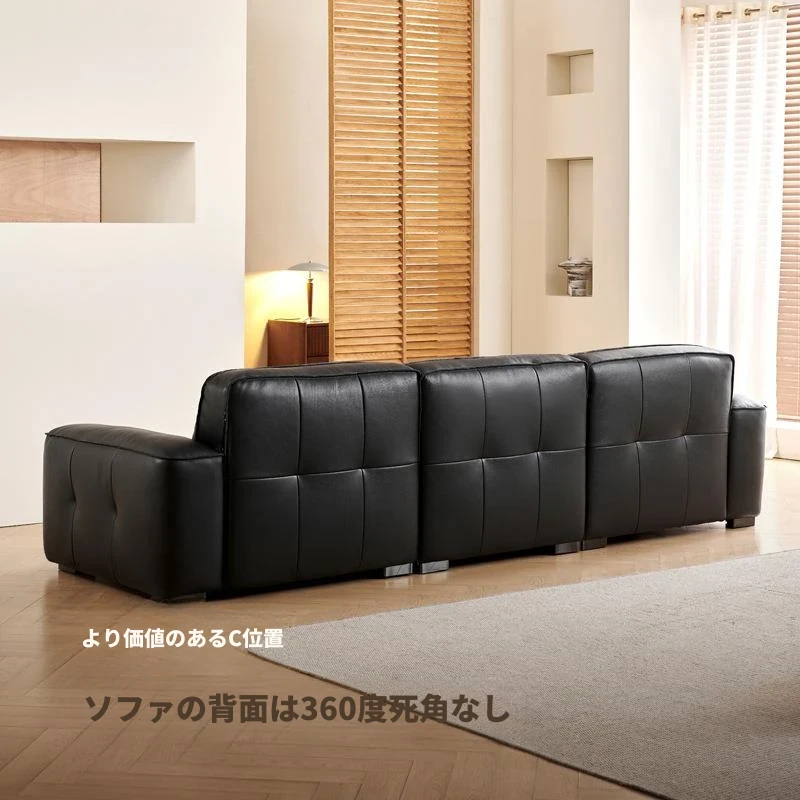 ヴィンテージ風 ブラックゴールド 本革製ソファ - デザイナーが手掛けたリビング用 レトロなトップグレイン牛革使用のブラックラグジュアリーソファ!上質な素材と洗練されたデザインで、あなたの空間に特別な魅力をプラスします。