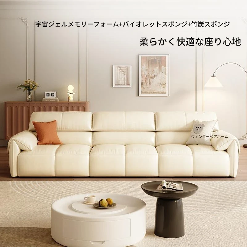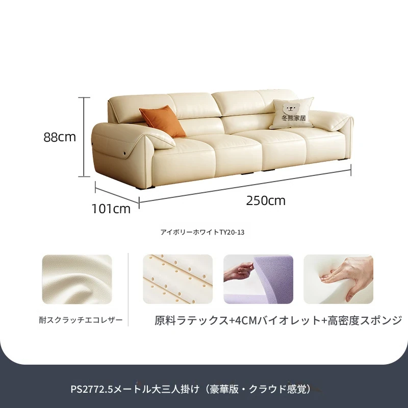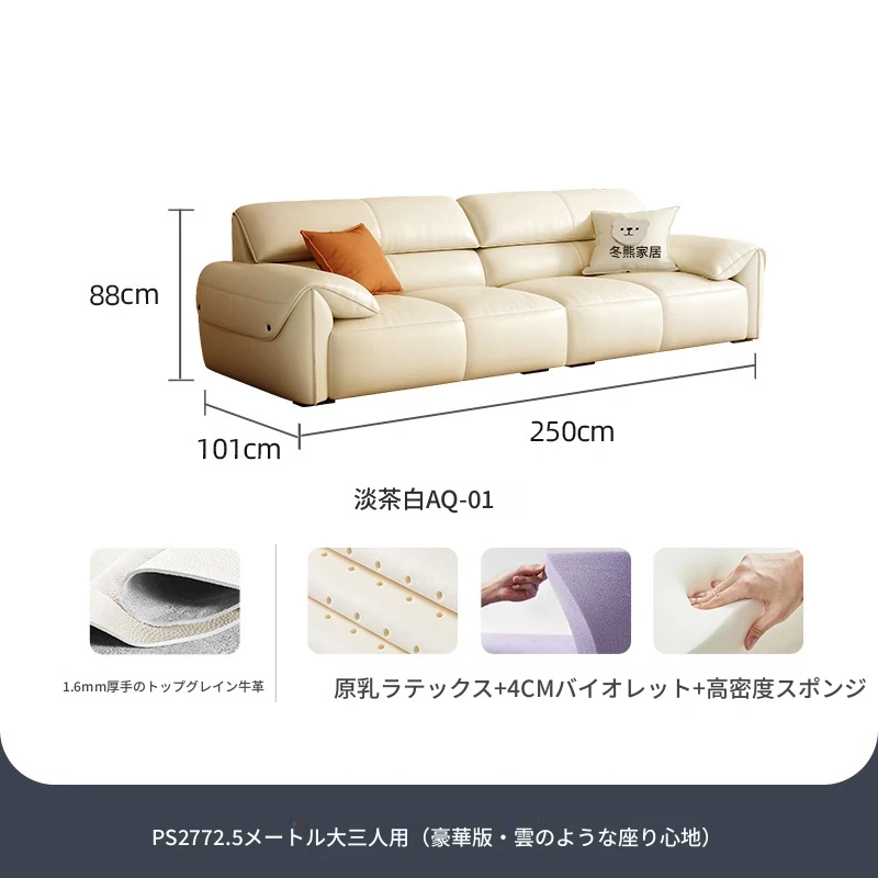 ①【アイボリー】2.5m/本革【ラグジュアリーバージョン・雲のような座り心地】