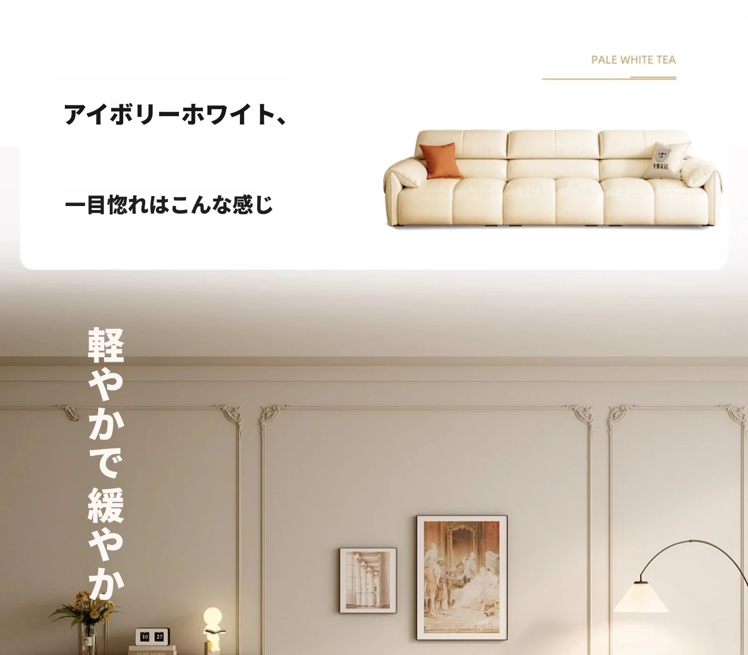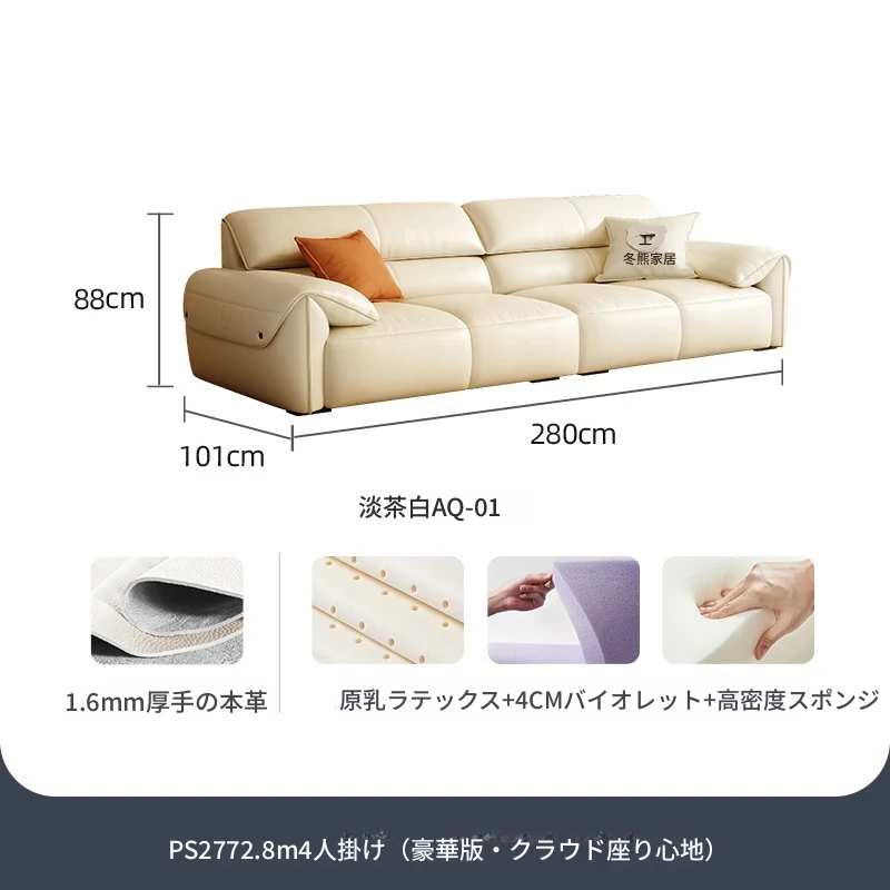 ⑥【アイボリー】2.8m/本革【フラッグシップバージョン・ゼロ圧無重力座り心地】
