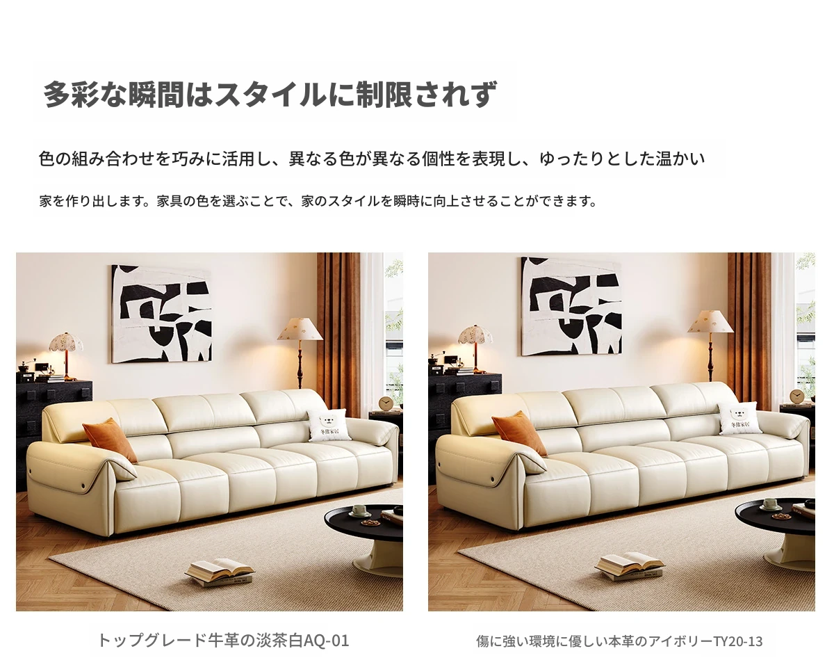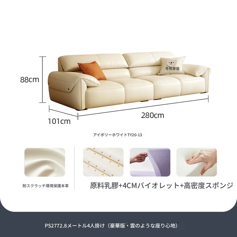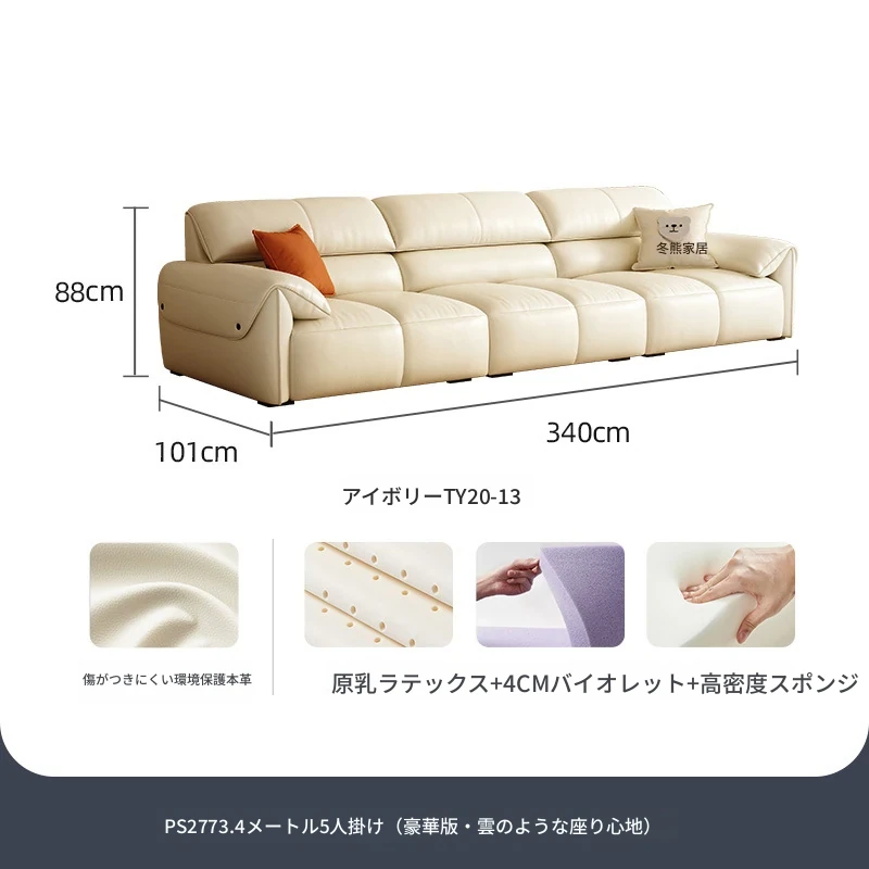 ④【アイボリー】3.4m/本革【ラグジュアリーバージョン・雲のような座り心地】