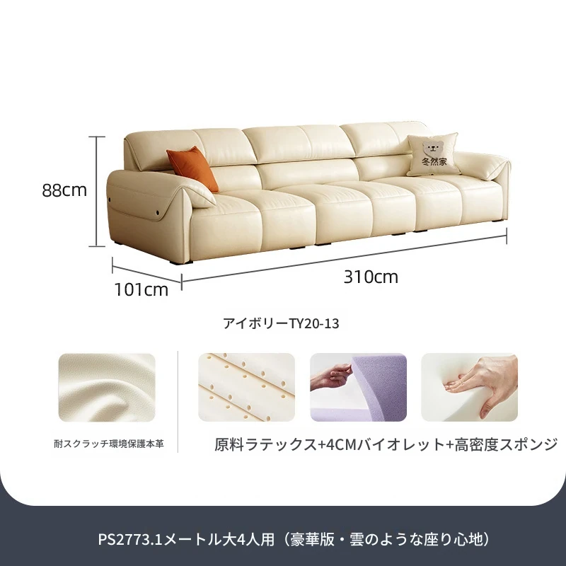 ③【アイボリー】3.1m/本革【ラグジュアリーバージョン・雲のような座り心地】