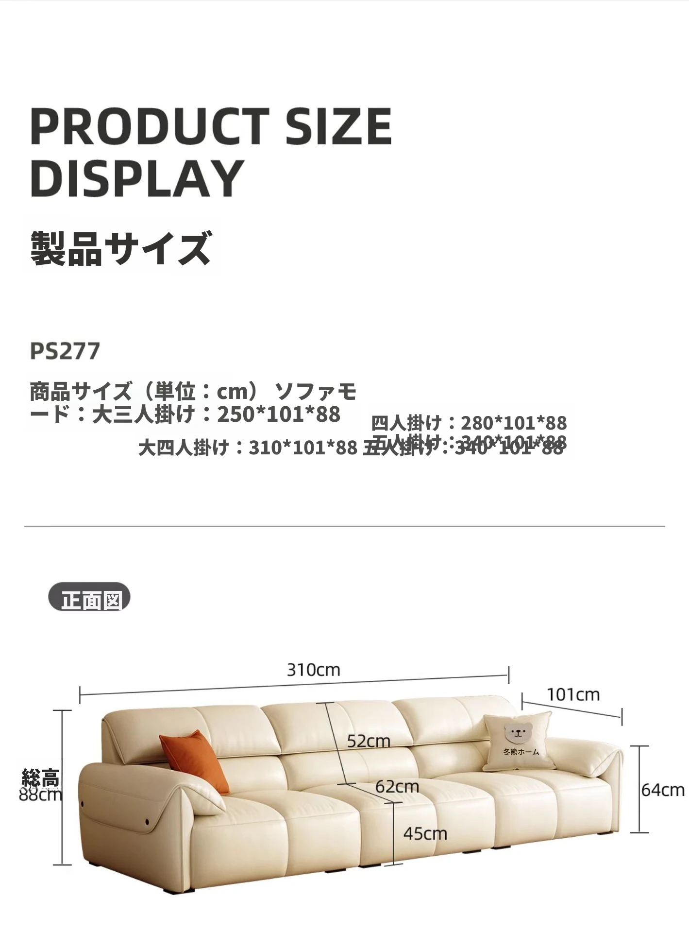 ⑪【淡い茶色】3.1m/厚手の本革【ラグジュアリーバージョン・雲のような座り心地】