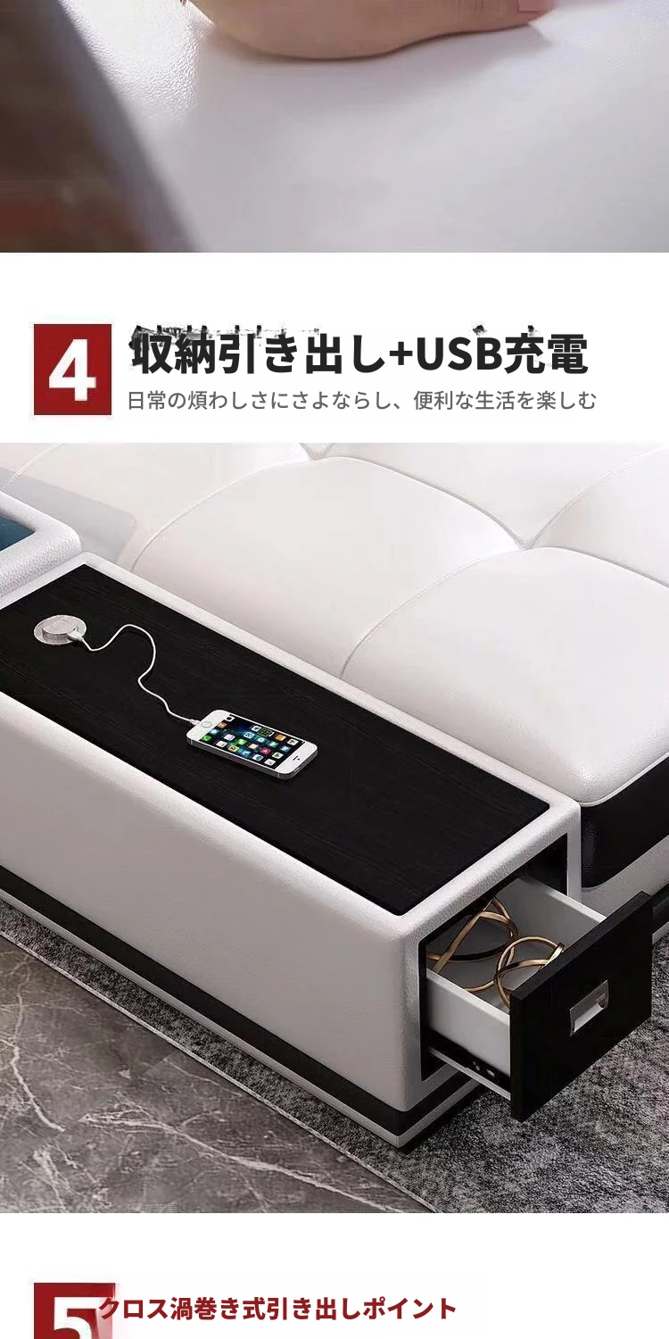 一人用+二人用+貴妃+サイドテーブル【中厚皮】