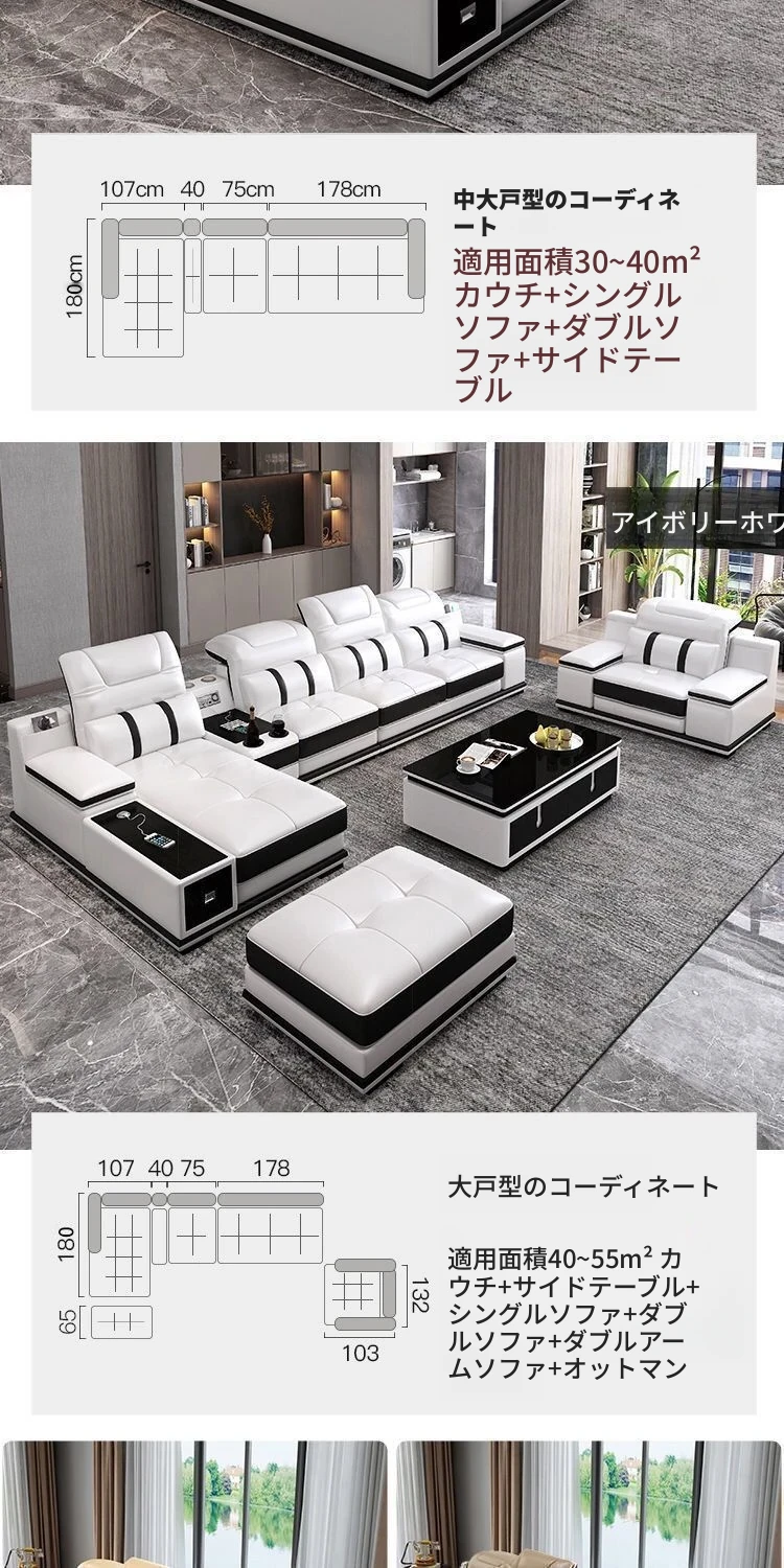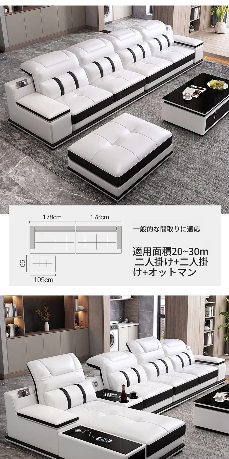 z%【ブランド】本革ソファー 輸入された一等牛革使用 モダンミニマルデザイン リビング用フルセットレザーソファーグループ - 高級感あふれる快適な空間を演出!