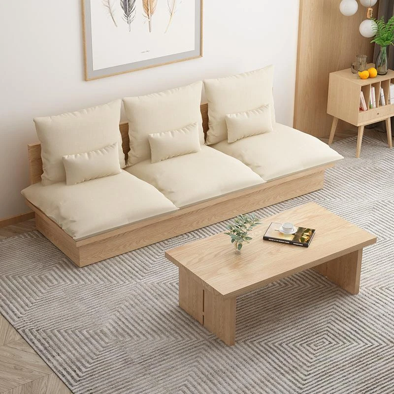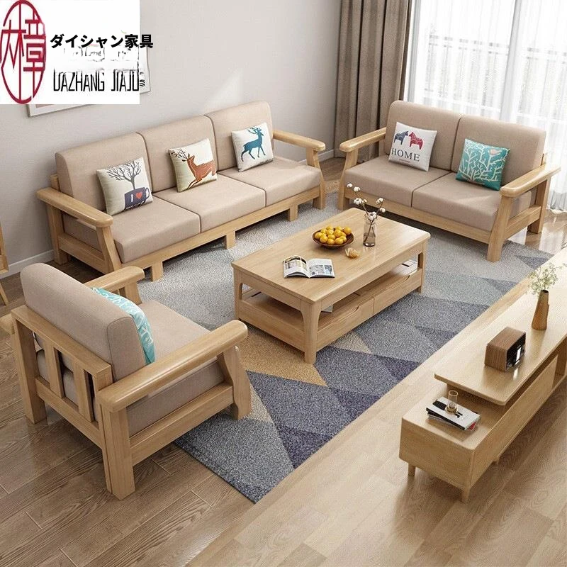 美欧風の外架サンドソファー - シンプルでスタイリッシュな1+2+3人掛けコンビネーション、天然木製、小型リビングに最適なレトロモダンデザイン!