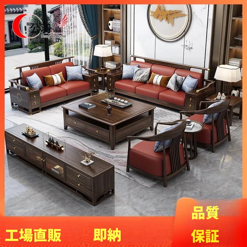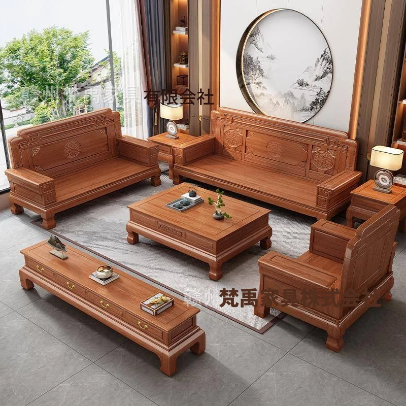 新中式実木ソファセット DFG 中軽国風の贅沢で現代的なデザイン、家庭用に最適。意禅の美しさを取り入れた小型リビングにもぴったりな高品質ソファです。