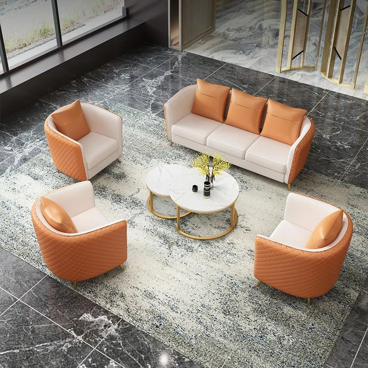ビジネスに最適!オフィスソファとコーヒーテーブルのセット - 会議、接客、ホテルのフロント、ロビーの待機エリアにぴったりなリラックス空間を提供します。快適な休息で仕事の効率をアップ!