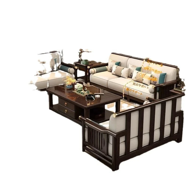 全実木製ソファー ウッディブラックウッド 客間用 冬夏兼用 ストレージ付き 布製 モダンシンプル エコノミータイプ 新中式家具で、快適なリビング空間を実現!