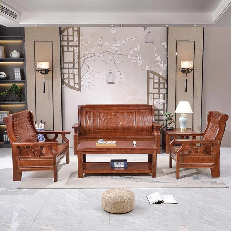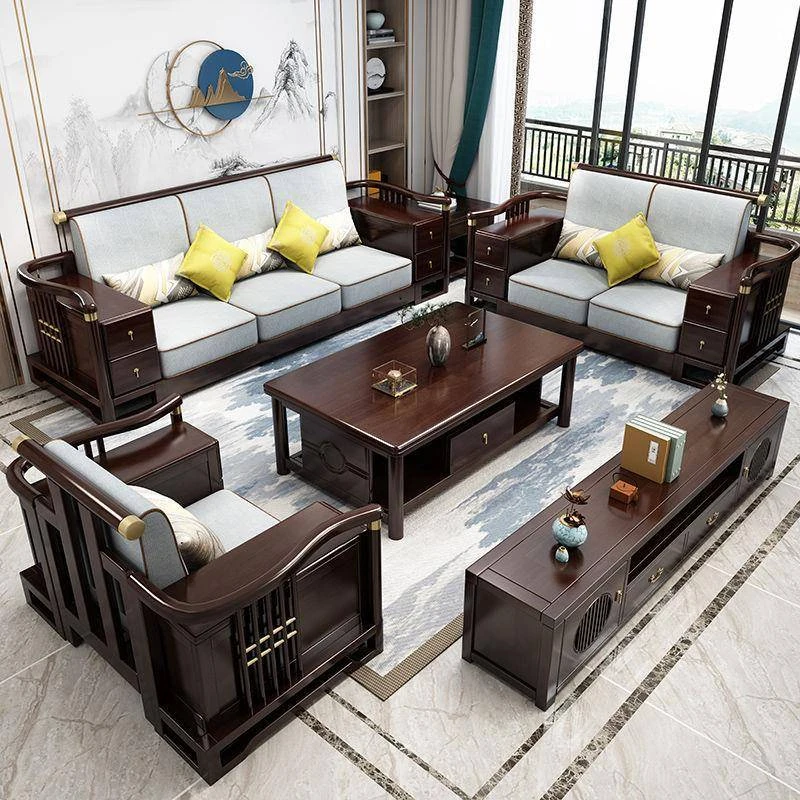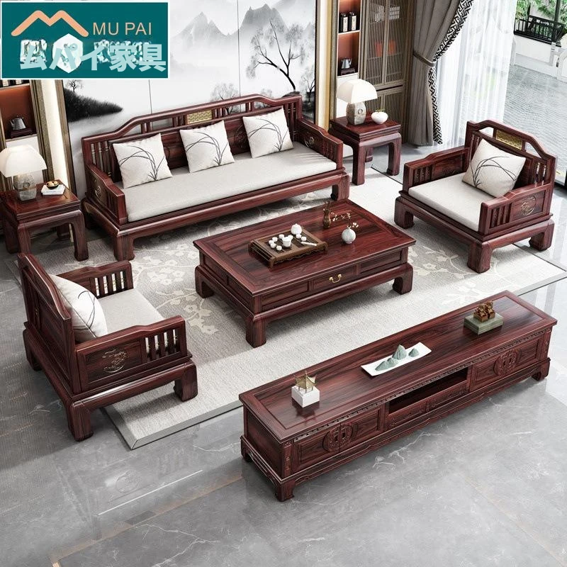 新中式実木ソファ123組合 花梨木リビング Zen風古典紅木ソファ 冬夏対応 工場直供でお得!