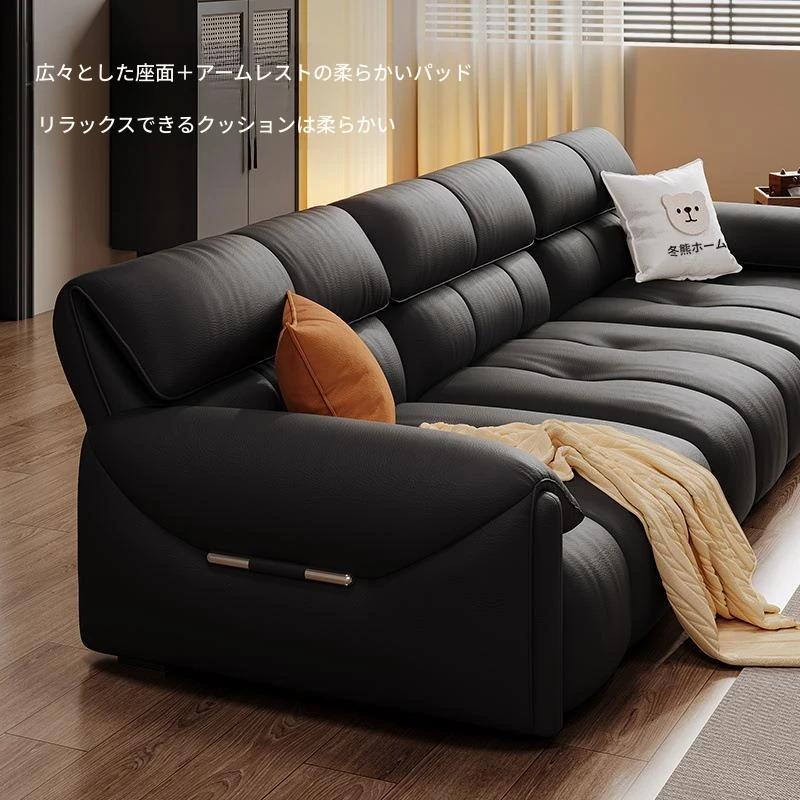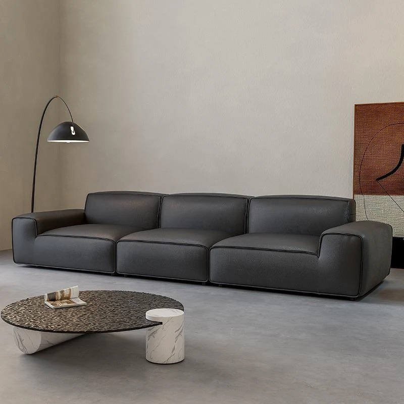 ミニマリストデザインの大黒レザーソファ - シンプルなリビングにぴったり!真皮使用で高級感あふれる直線的なスタイル。佛山製の高品質家具で、居心地の良い空間を演出します。