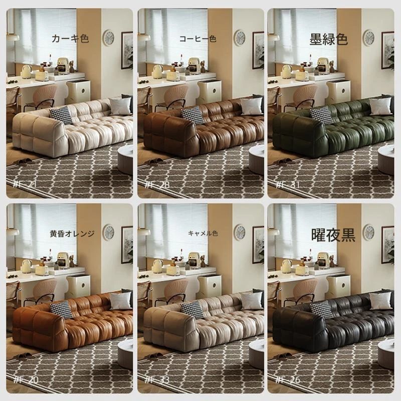 デザイナーによる本革ソファ、クリーム風の別荘リビングにぴったり。シンプルで洗練された第一層牛革使用、イタリアン&フレンチスタイルの軽奢ソファで、あなたの空間を格上げします。