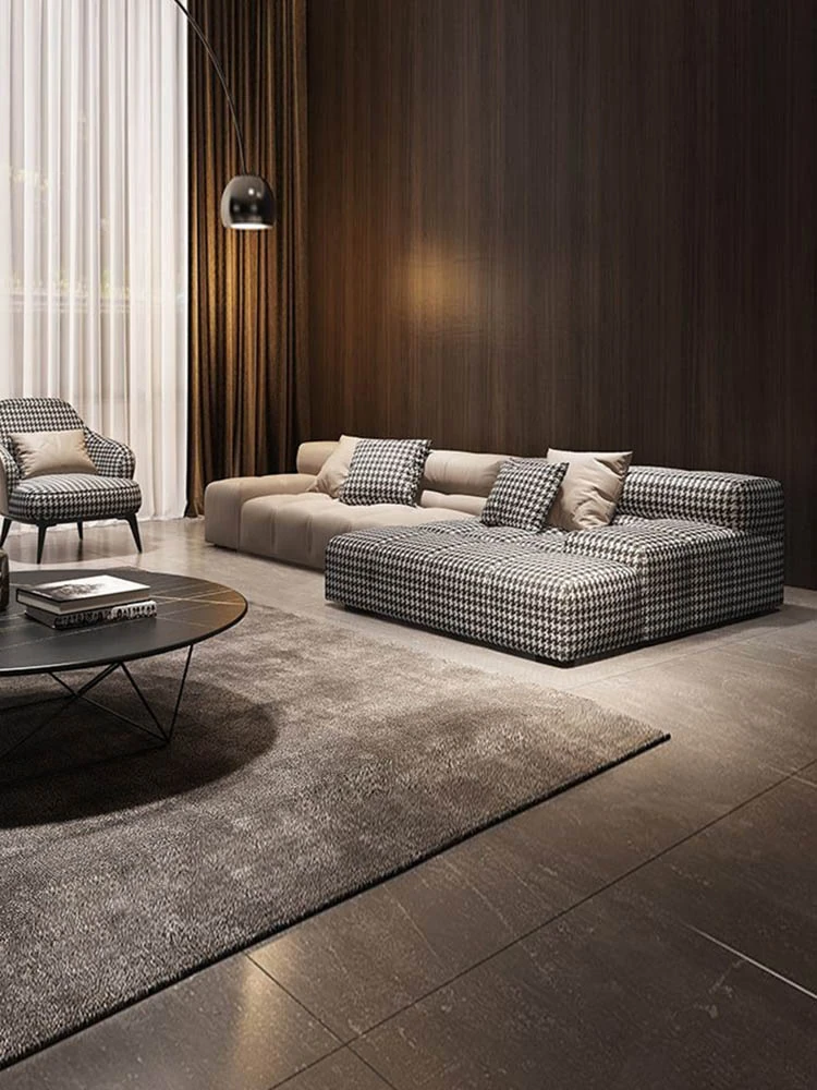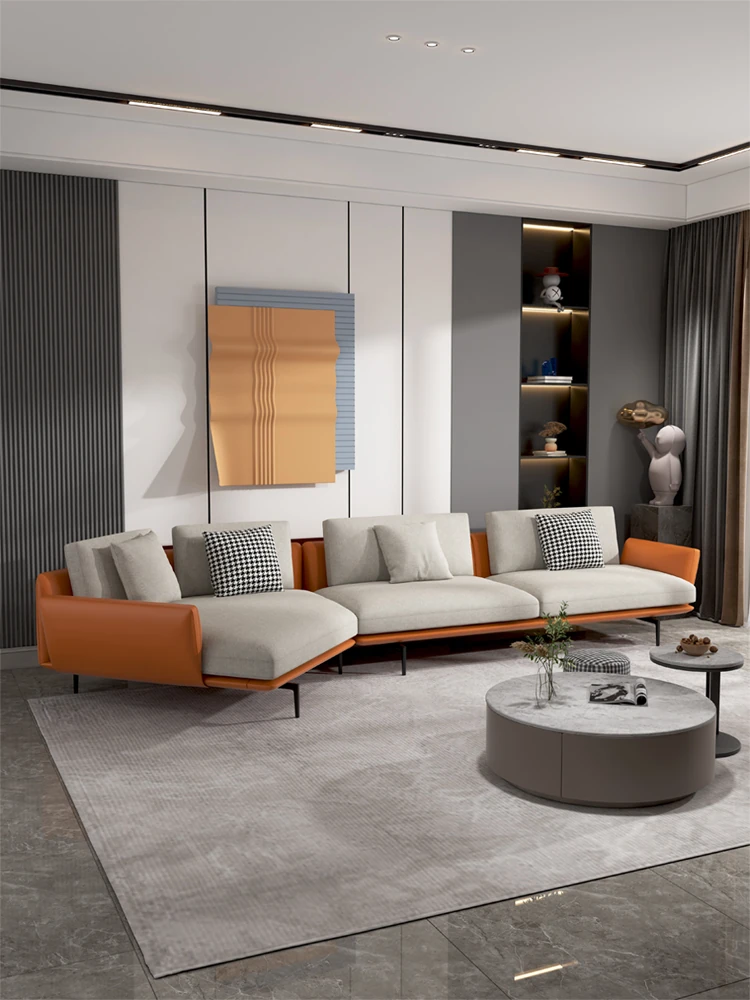 イタリアンミニマル真皮ソファー - 北欧風の軽やかなラグジュアリー、現代的でシンプルなモジュール式デザイン、コンパクトなリビングに最適な豆腐型ソファー。