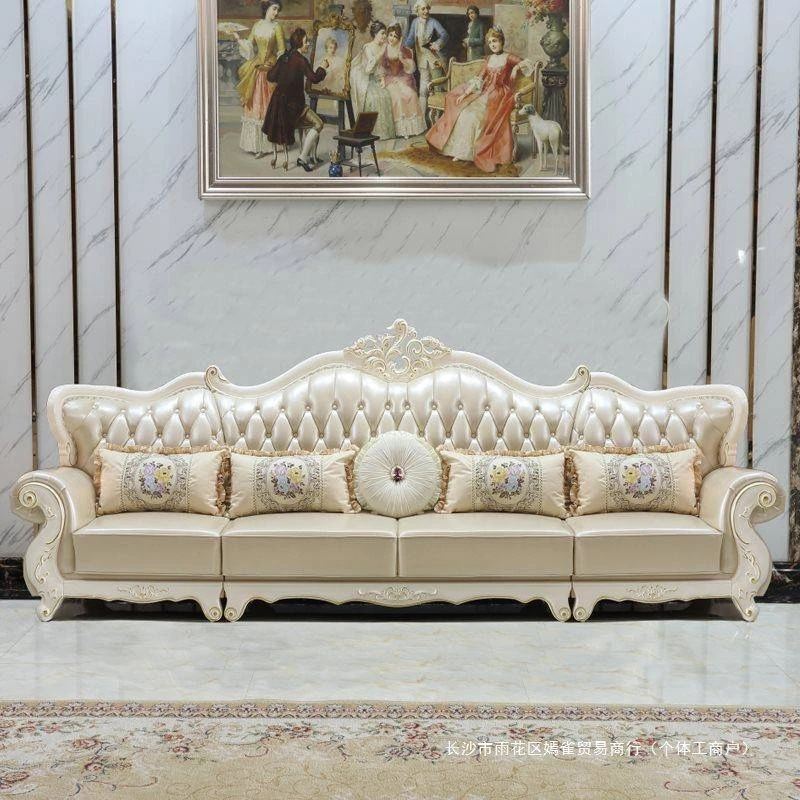 エレガントなヨーロピアンコーナーソファ0688 - 小型リビングに最適!フランス風デザインの4人掛け、全木製のL字型ソファ。スタイリッシュで快適、家族や友人との楽しいひとときを演出します。