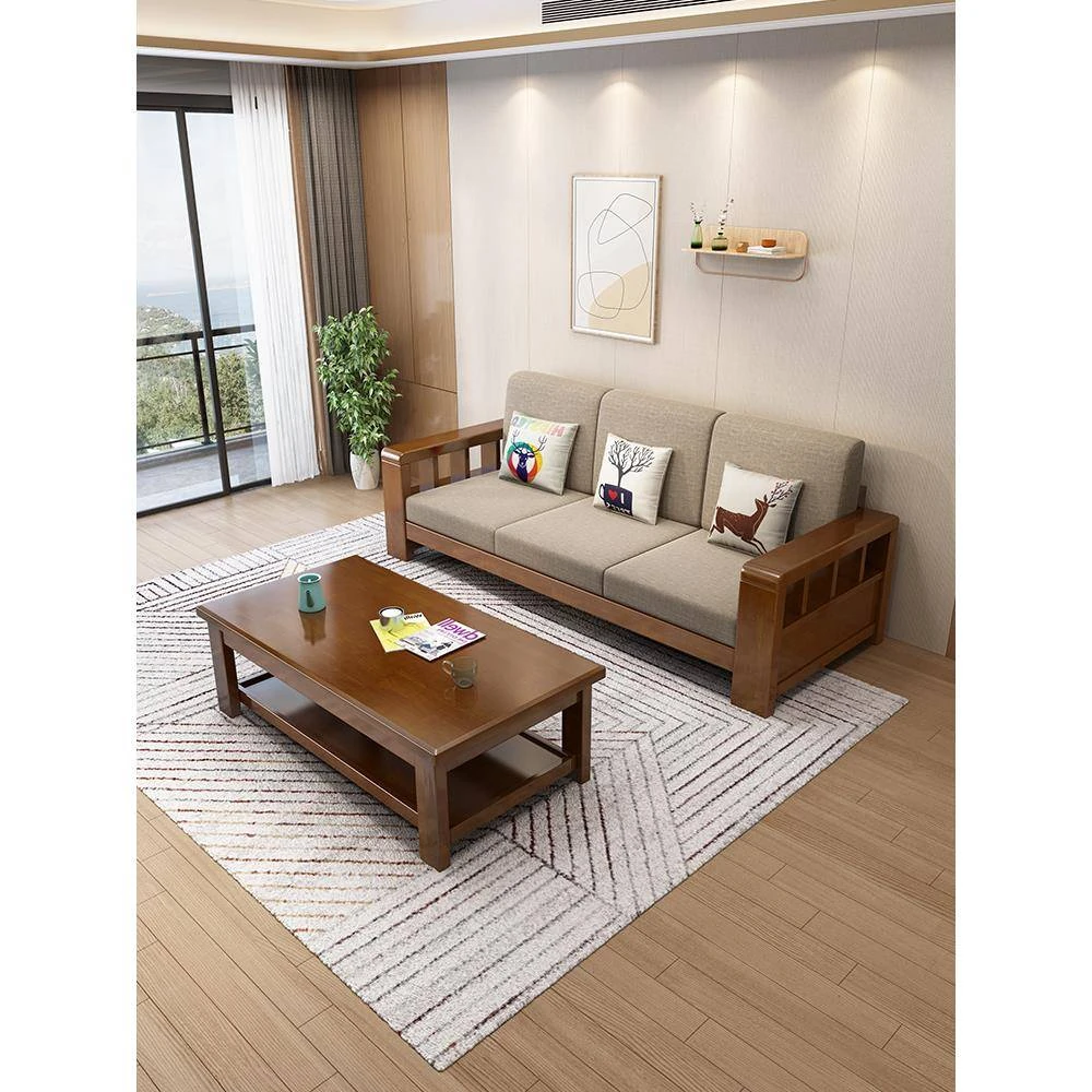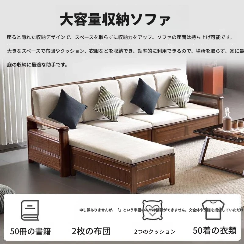 北米産ブラックウォールナット無垢材ソファセット - 新中式デザインでシンプルかつモダン、小型空間に最適なラグジュアリー収納ソファ。あなたのリビングに洗練された雰囲気を添えます!