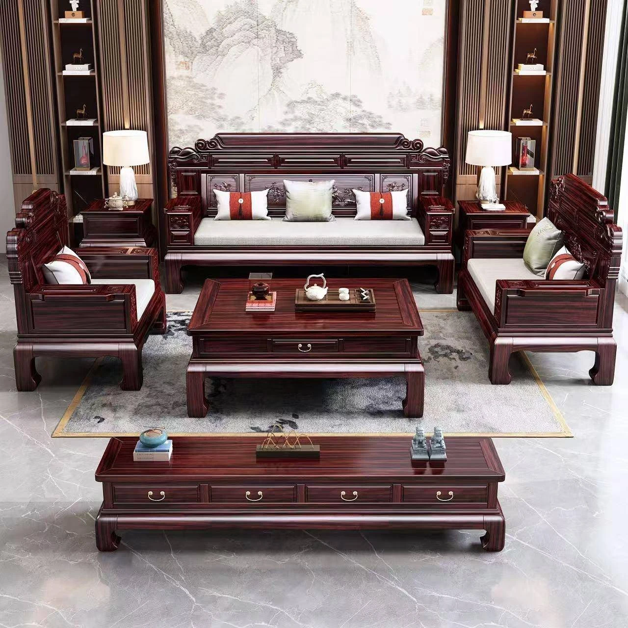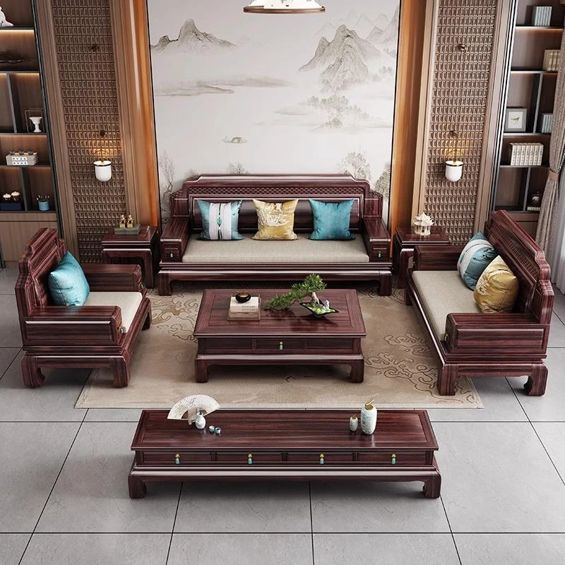 Elegant New Chinese Style Blackwood YS-999 Sofa Set - Versatile Living Room Combination for Small Spaces, Luxurious Classic Carving for Both Summer and Winter Use