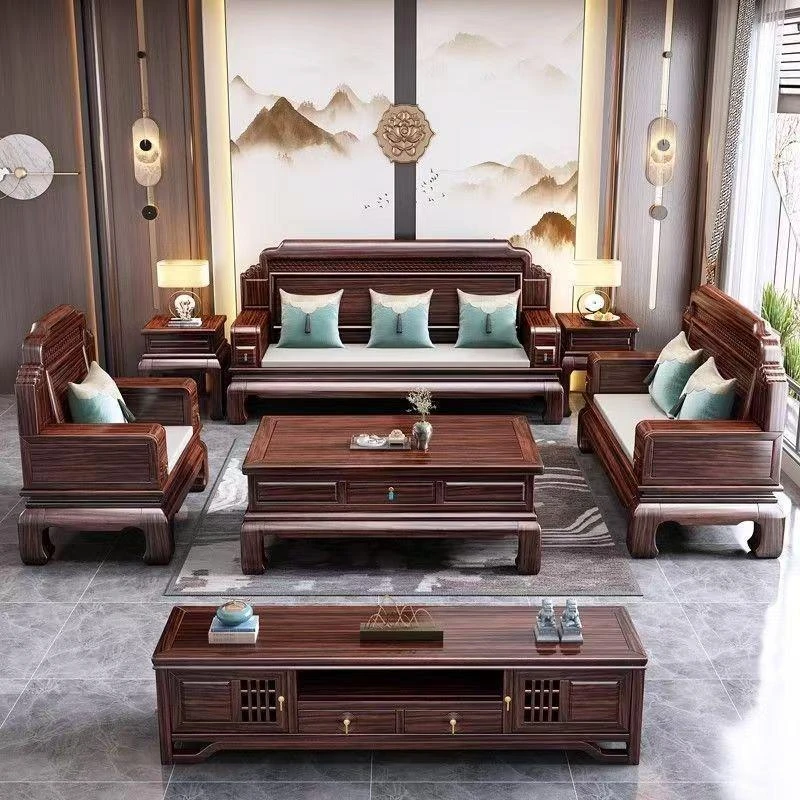 New Chinese Style Blackwood Solid Wood Sofa for Small to Medium Spaces – Stylish High-Storage Box Design, Luxurious and Functional for Year-Round Use in Your Living Room
