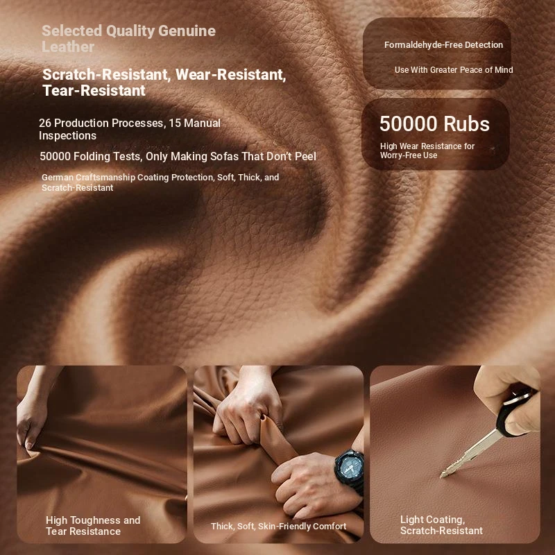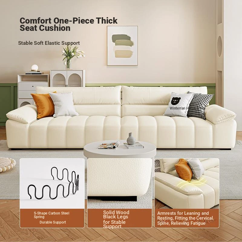Genuine Leather Sofa for Small Living Rooms - Italian Minimalist Modern Straight-Row Modular Cat Scratch-Resistant Couch