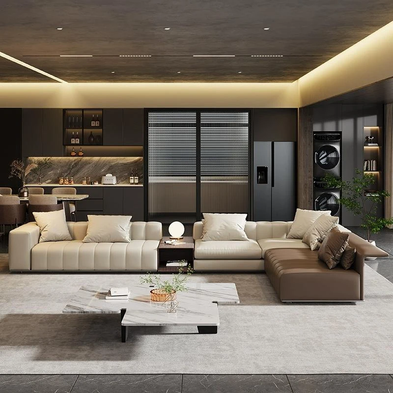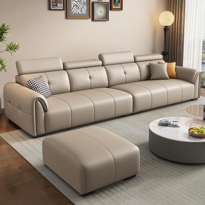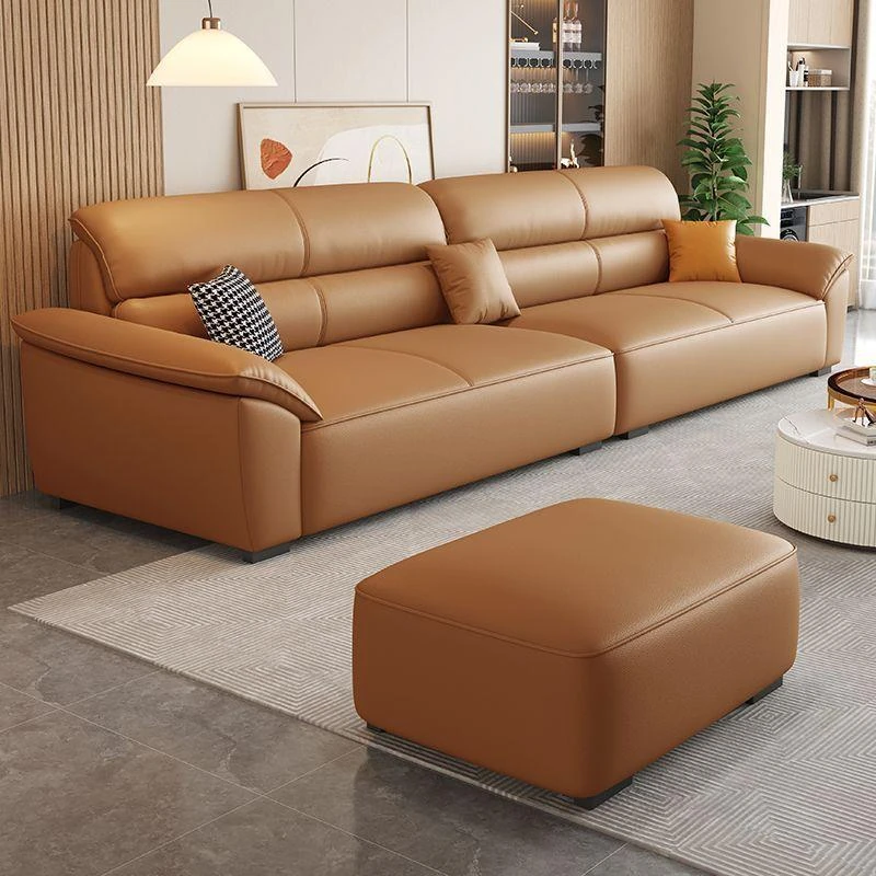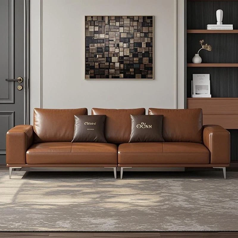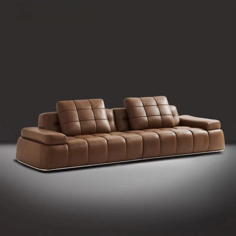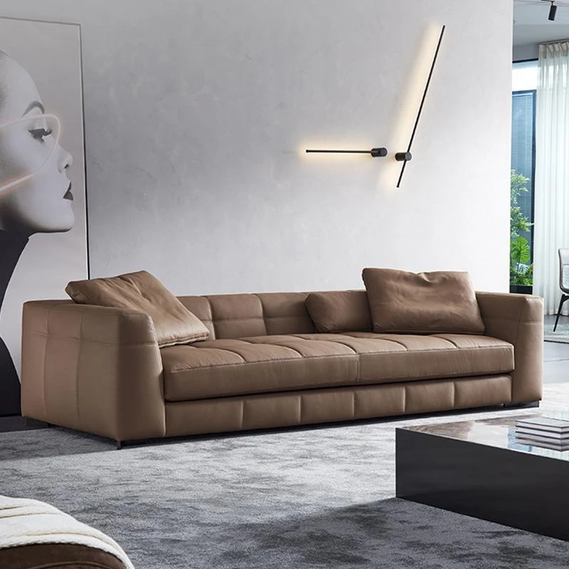 Italian Minimalist Leather Sofa - Modern Simple Living Room Set in Top Grain Cowhide, Stylish and Comfortable Design for Your Home