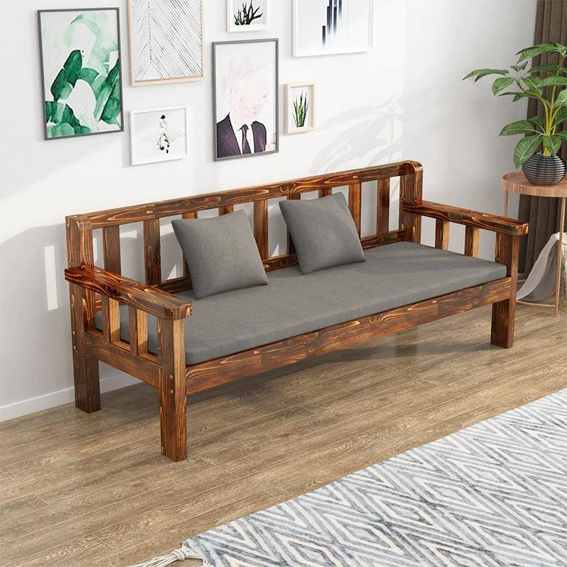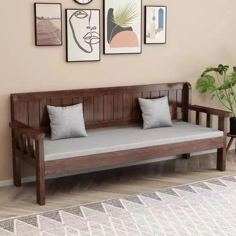 Modern Minimalist Wooden Sofa for Small Spaces - Versatile 3-in-1 Bench with Backrest for Living Room and Bedroom, New Chinese Style, Perfect for Cozy Interiors
