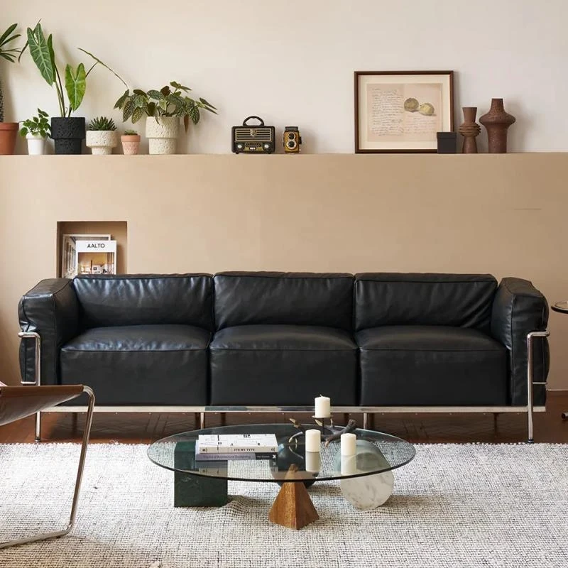 LC3 Genuine Leather Sofa by Cassina - Le Corbusier Vintage Designer Living Room Retro Italian Minimalist Sofa
