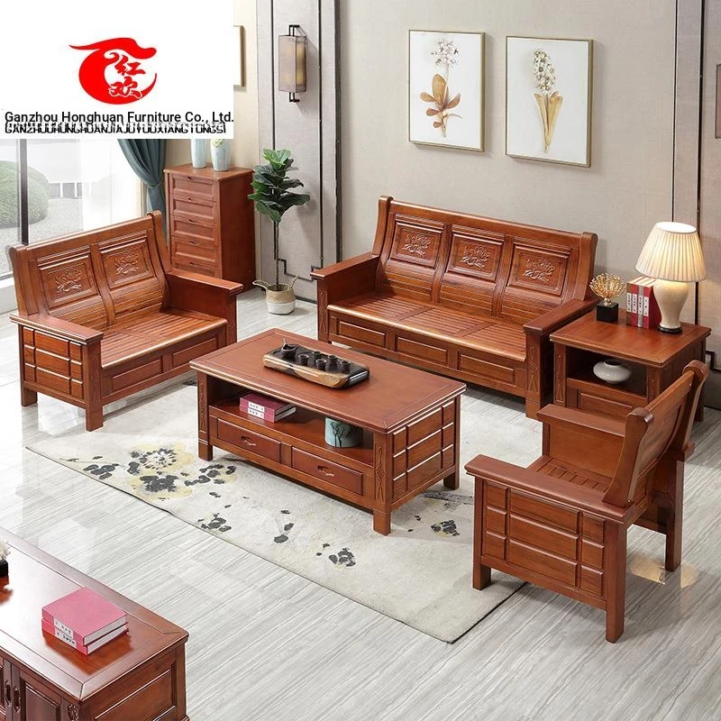 Solid Wood Sofa Set - Compact and Stylish New Chinese-Style 3-Seater for Small Spaces, Perfect for Economical Living Rooms