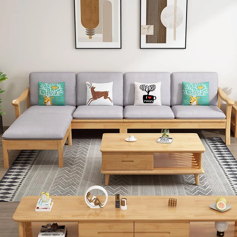 Nordic Solid Wood Sofa Set - Modern Minimalist Luxury Single Corner Sofa for Small Spaces - Perfect for Living Room and Cozy Home Decor