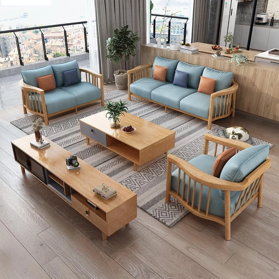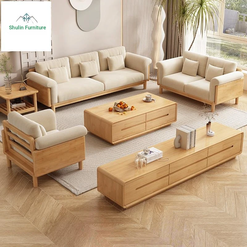Nordic Solid Wood Sofa Set - Modern Minimalist Creamy Japanese Fabric Sofa for Small Living Rooms, Perfect Home Furniture Combination