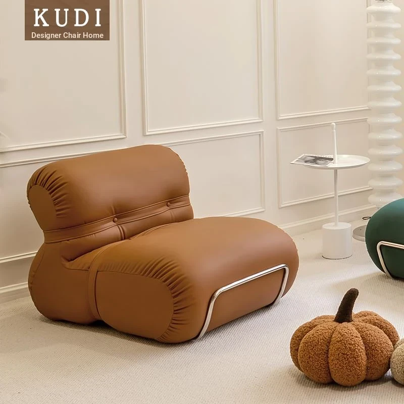 Nordic Style Leather Single Sofa Chair - Modern Minimalist Lazy Chair for Living Room, Bedroom, Balcony, and Apartments - Perfect for Home Use