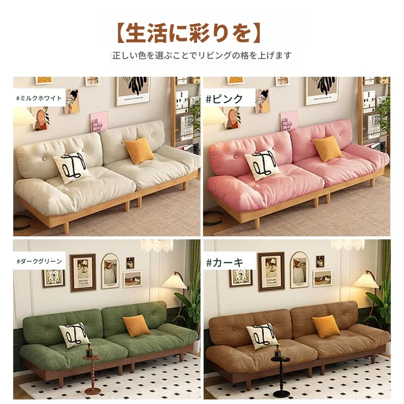雲のようなソファ|シンプルな和風デザインの無垢材3人掛けソファ|羽毛布地使用|小さなスペースにぴったりな侘寂スタイルのクリームカラーで心地よい空間を演出します!